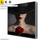 Dann sollte die Wechsel-Leinwand Canvalight® TEX | Frau mit Hut & Rose | Hochformat den Weg zu Dir finden. Die Austausch-Leinwand schwarz gekleidete Frau mit roter Rose - passend für unsere stufenlos dimmbaren, steckerfertigen Leinwandbilder im Leuchtrahmen mit Fernbedienung und optionaler Farbtemperatursteuerung - fügt sich als Eye-Catcher harmonisch in jedes Bar - Gastronomie, Friseur - Beauty, Wohnzimmer - Schlafzimmer Raumkonzept ein.