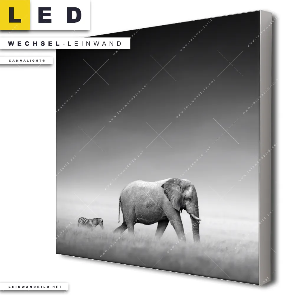 Du bist auf der Suche nach einer Tierwelt, Landschaften Wechsel-Leinwand für Dein LED-Leinwandbild im Quadratischen Format? Begriffe wie Afrika, wild, Safari, Zebra, Elefant, Savanne, Steppe haben Dich auf der Suche nach Deiner Ersatz-Leinwand für dein LED Wandbild mit wechselbarer Leinwand inspiriert? Farben wie Weiss, Schwarz dürfen auf Deinem neuen Wechselmotiv für Dein XXL Leinwand-LED-Bild nicht fehlen und Leinwände im Natürlich - Realistisch, Schwarz - Weiss Stil für Leuchtbilder passen perfekt zu Deinem Einrichtungsstil?