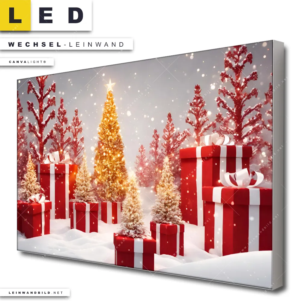 Du bist auf der Suche nach einer Winter Wechsel-Leinwand für Dein LED-Leinwandbild im Querformat? Begriffe wie Weihnachten, Tannebaum, Geschenke, Weihnachtskugeln haben Dich auf der Suche nach Deiner Ersatz-Leinwand für dein breites LED Wandbild mit wechselbarer Leinwand inspiriert? Farben wie Weiss, Gold, Beige, Orange, Rot, Grau dürfen auf Deinem neuen Wechselmotiv für Dein XXL Leinwand-LED-Bild nicht fehlen und Leinwände im Abstrakt, Minimalistisch Stil für Leuchtbilder passen perfekt zu Deinem Einrichtungsstil?