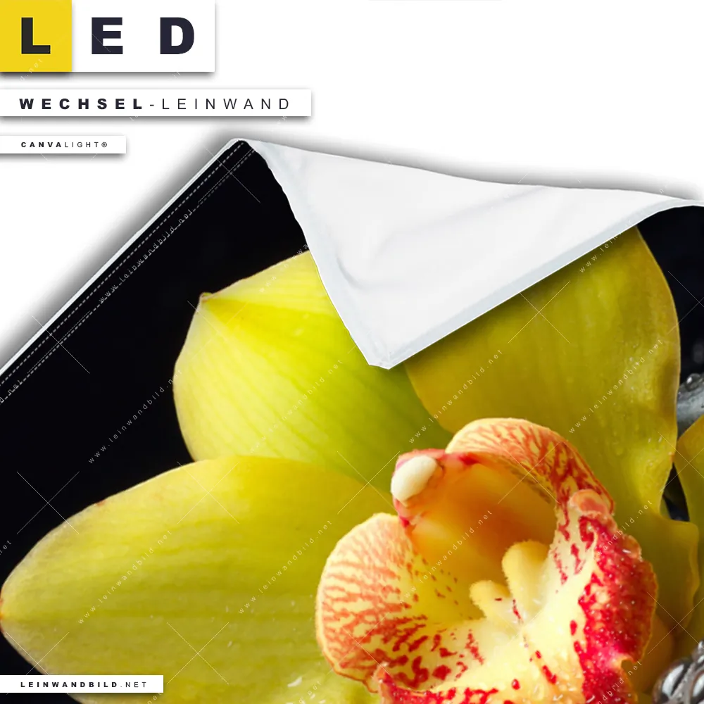 Du konfigurierst Deine individuelle LED Wechsel-Leinwand Canvalight® TEX | Gelbe Orchidee | Hochformat und wir produzieren sie NEU für Dich. Unsere Buddha - Feng Shui, Blumen - Botanik Austausch-Fotoleinwände für Canvalight® LED Bilder sind KEINE Lagerware. Du bist Dir unsicher, welches Motiv oder Format das richtige für dein individuelles LED Wechselmotiv auf Leinwand ist, dann helfen wir dir gerne weiter und beraten dich!