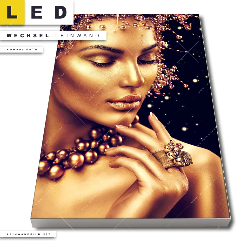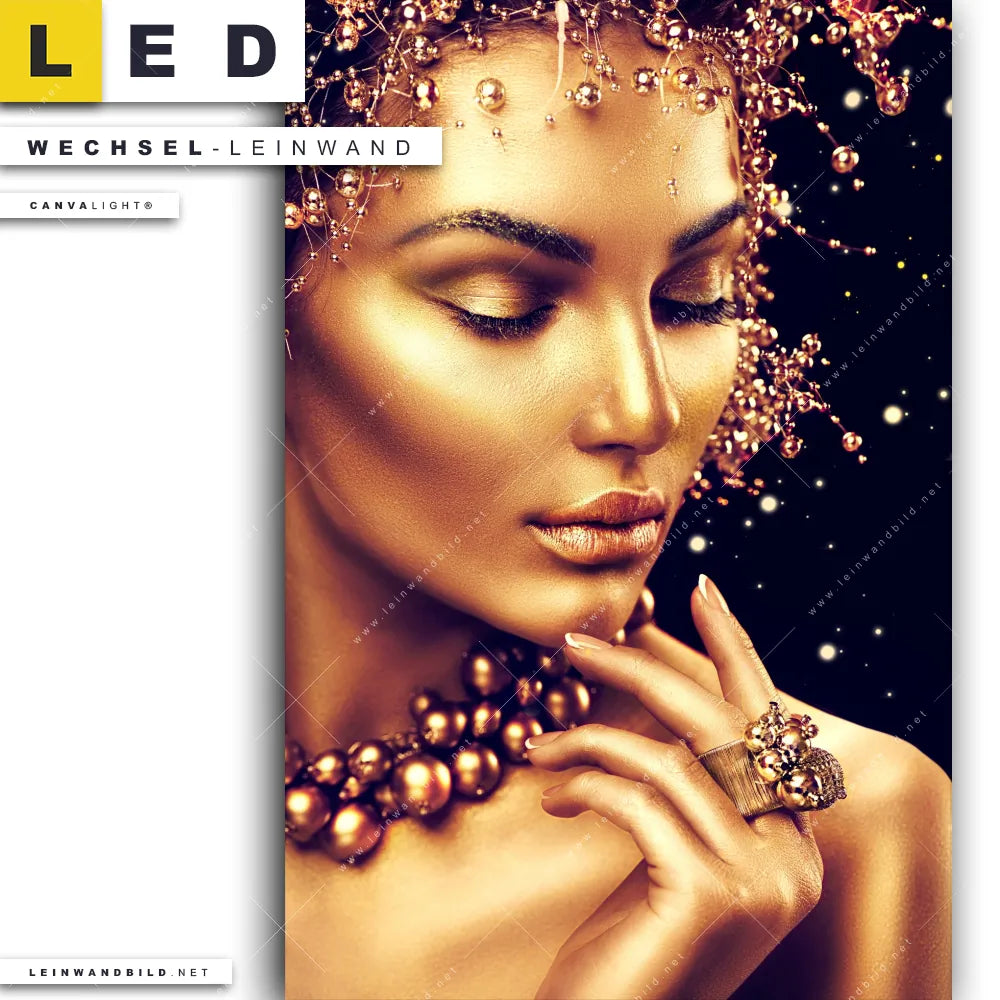 Du bist auf der Suche nach einer Porträts - Menschen Wechsel-Leinwand für Dein LED-Leinwandbild im Hochformat? Begriffe wie Frau, Farbe, Beauty, Gesicht, Körper, Make-Up, Schminke, Mädchen, Glitzer, Glitter haben Dich auf der Suche nach Deiner Ersatz-Leinwand für dein LED Wandbild mit wechselbarer Leinwand inspiriert? Farben wie Gold, Schwarz dürfen auf Deinem neuen Wechselmotiv für Dein XXL Leinwand-LED-Bild nicht fehlen und Leinwände im Modern Art, Minimalistisch Stil für Leuchtbilder passen perfekt zu Deinem Einrichtungsstil?
