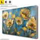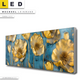 LED Wechsel-Leinwand Canvalight® TEX | Goldene Blumen auf Blau | Hochformat