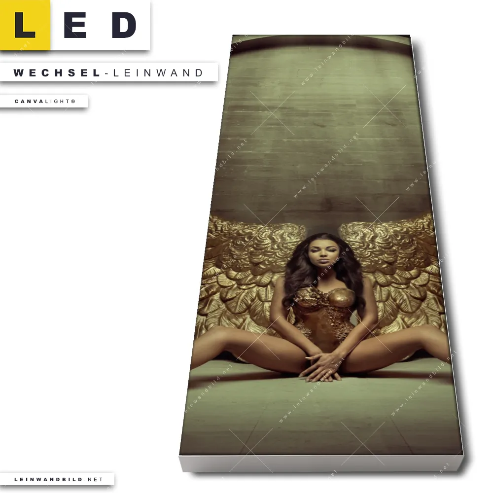 Du bist auf der Suche nach einer Porträts - Menschen Wechsel-Leinwand für Dein LED-Leinwandbild im Schmalen Format? Begriffe wie Frau, Erotik, modern, Gold, sexy, Körper, Beauty, Flügel, Engel haben Dich auf der Suche nach Deiner Ersatz-Leinwand für dein LED Wandbild im Panorama-Hochformat mit wechselbarer Leinwand inspiriert? Farben wie Gold, Schwarz dürfen auf Deinem neuen Wechselmotiv für Dein XXL Leinwand-LED-Bild nicht fehlen und Leinwände im Modern Art, Natürlich - Realistisch Stil für Leuchtbilder passen perfekt zu Deinem Einrichtungsstil?