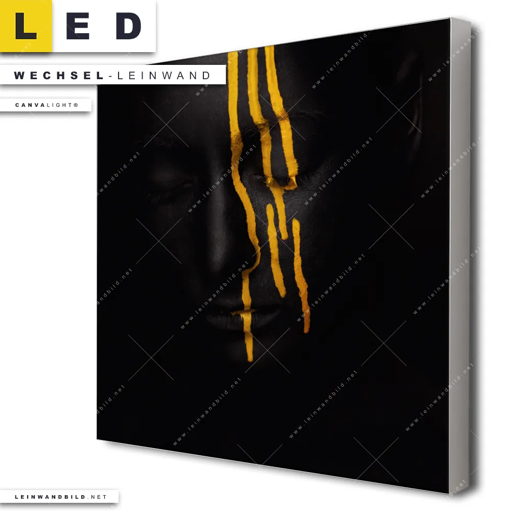 Du bist auf der Suche nach einer Porträts - Menschen Wechsel-Leinwand für Dein LED-Leinwandbild im Quadratischen Format? Begriffe wie Frau, Farbe, Beauty, Gesicht, Körper, Lippen, Mund haben Dich auf der Suche nach Deiner Ersatz-Leinwand für dein LED Wandbild mit wechselbarer Leinwand inspiriert? Farben wie Gold, Schwarz dürfen auf Deinem neuen Wechselmotiv für Dein XXL Leinwand-LED-Bild nicht fehlen und Leinwände im Modern Art, Minimalistisch Stil für Leuchtbilder passen perfekt zu Deinem Einrichtungsstil?