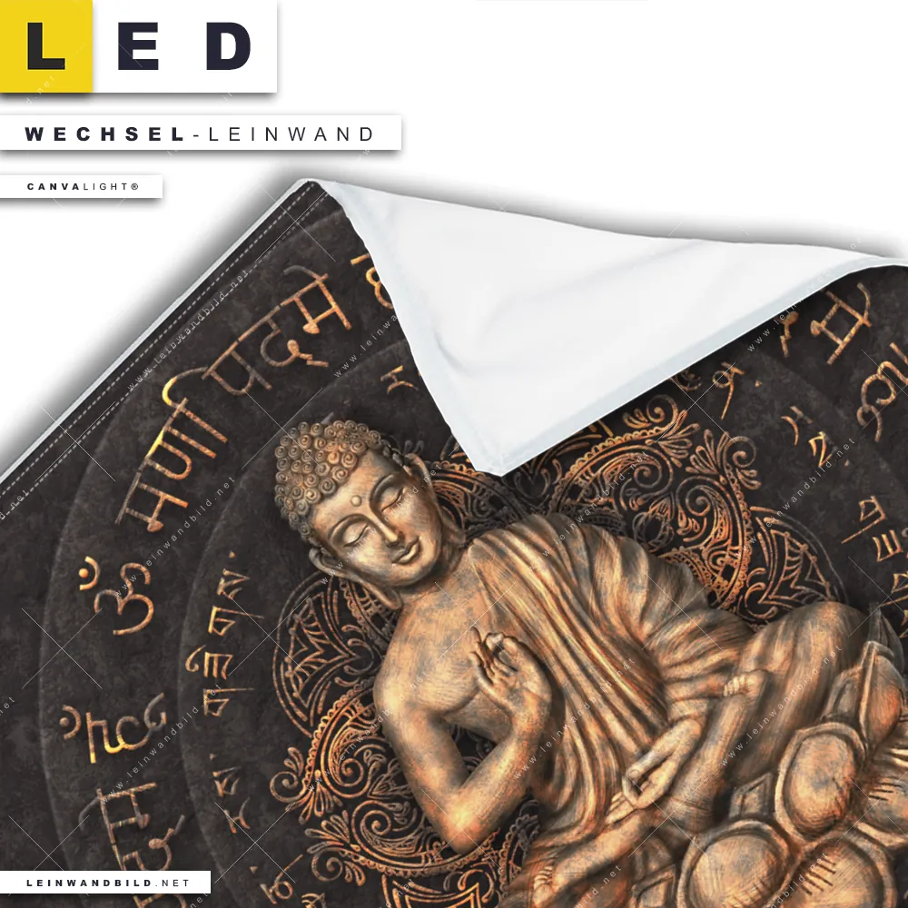 Du bist auf der Suche nach einer Buddha - Feng Shui Wechsel-Leinwand für Dein LED-Leinwandbild im Quadratischen Format? Begriffe wie Buddha, Buddhismus, Religion, Feng Shui, Zen, Meditation, Lotus Pose, Gold haben Dich auf der Suche nach Deiner Ersatz-Leinwand für dein LED Wandbild mit wechselbarer Leinwand inspiriert? Farben wie Schwarz, Gold dürfen auf Deinem neuen Wechselmotiv für Dein XXL Leinwand-LED-Bild nicht fehlen und Leinwände im Mixed Media, Modern Art Stil für Leuchtbilder passen perfekt zu Deinem Einrichtungsstil?
