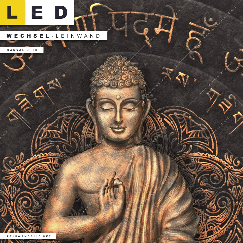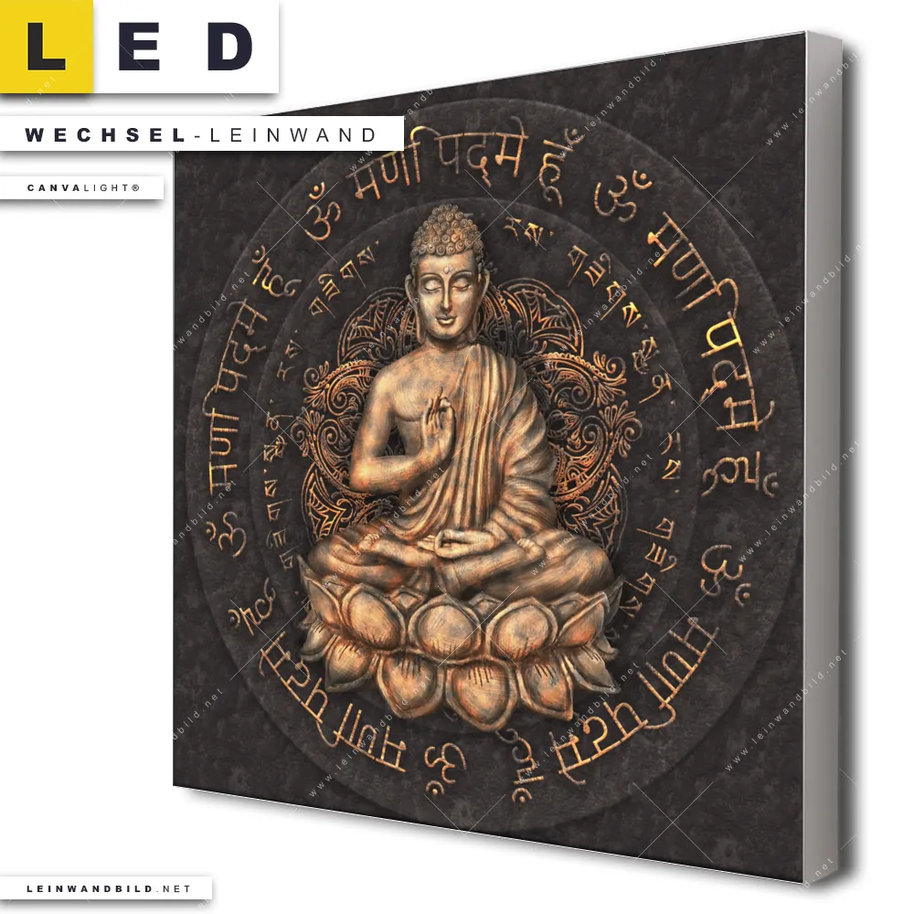 Du konfigurierst Deine individuelle LED Wechsel-Leinwand Canvalight® TEX | Goldener Buddha No.2 | Quadrat und wir produzieren sie NEU für Dich. Unsere Buddha - Feng Shui Austausch-Fotoleinwände für Canvalight® LED Bilder sind KEINE Lagerware. Du bist Dir unsicher, welches Motiv oder Format das richtige für dein individuelles LED Wechselmotiv auf Leinwand ist, dann helfen wir dir gerne weiter und beraten dich!