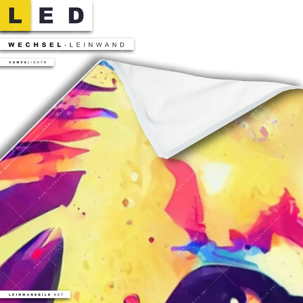 Du konfigurierst Deine individuelle LED Wechsel-Leinwand Canvalight® TEX | Graffiti Löwe | Schmal und wir produzieren sie NEU für Dich. Unsere Tierwelt Austausch-Fotoleinwände für Canvalight® LED Bilder sind KEINE Lagerware. Du bist Dir unsicher, welches Motiv oder Format das richtige für dein individuelles LED Wechselmotiv auf Leinwand ist, dann helfen wir dir gerne weiter und beraten dich!