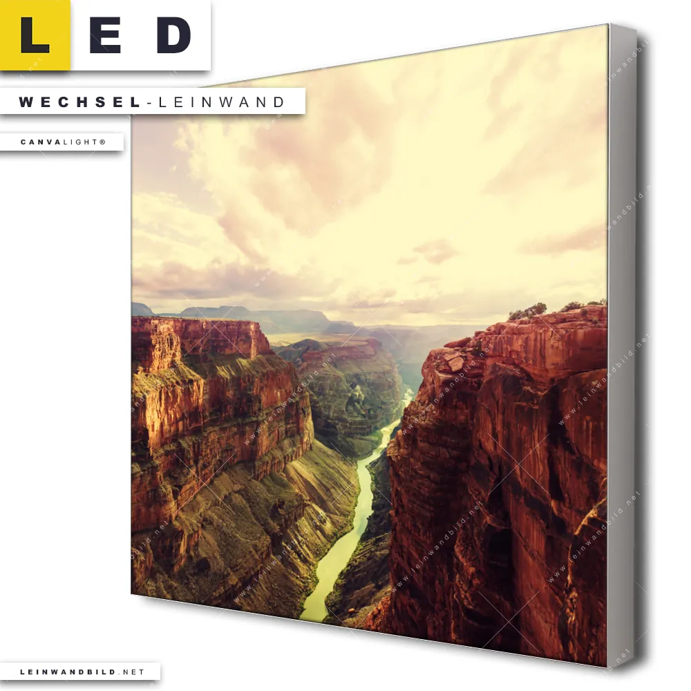 Du konfigurierst Deine individuelle LED Wechsel-Leinwand Canvalight® TEX | Grand Canyon Landschaft | Quadrat und wir produzieren sie NEU für Dich. Unsere Landschaften Austausch-Fotoleinwände für Canvalight® LED Bilder sind KEINE Lagerware. Du bist Dir unsicher, welches Motiv oder Format das richtige für dein individuelles LED Wechselmotiv auf Leinwand ist, dann helfen wir dir gerne weiter und beraten dich!