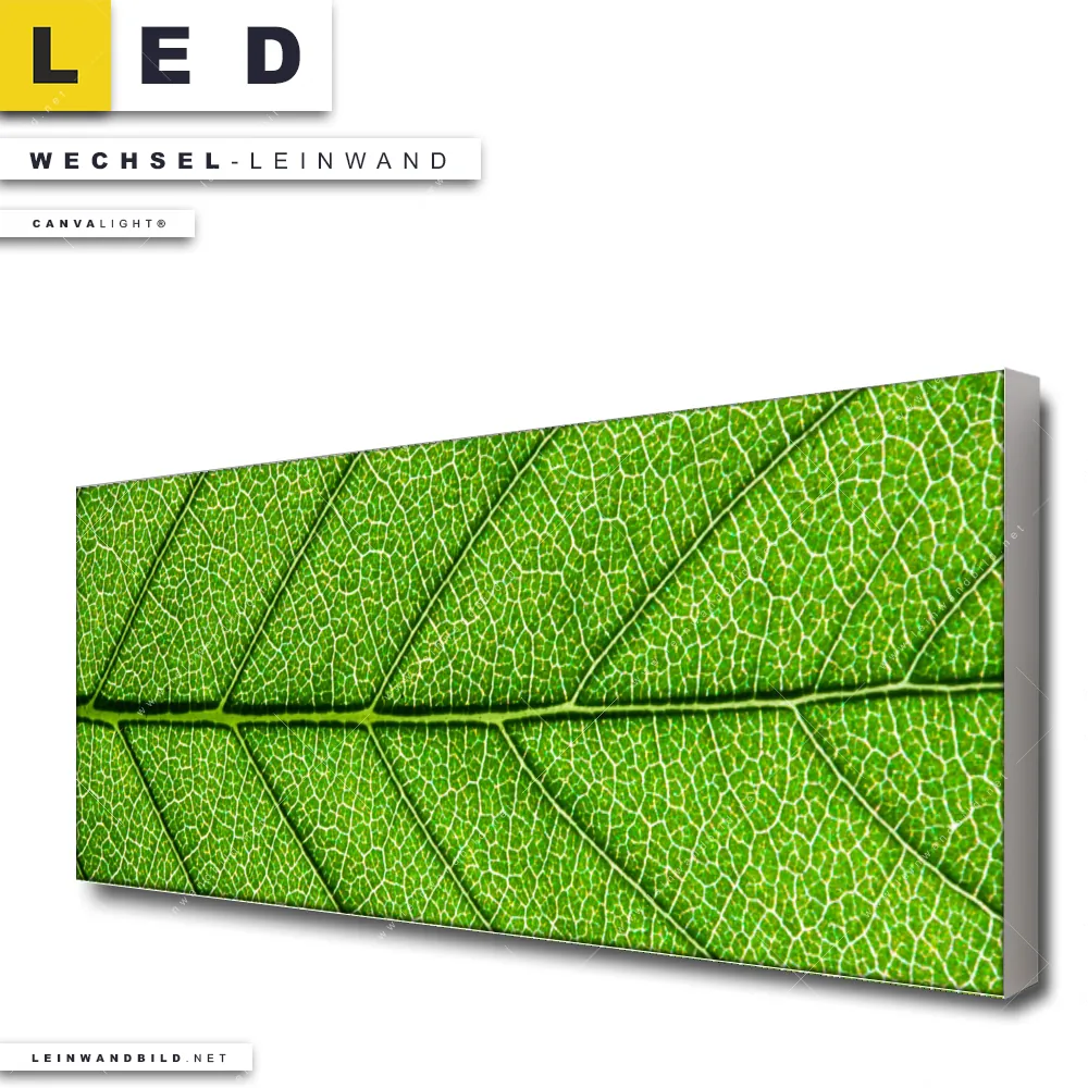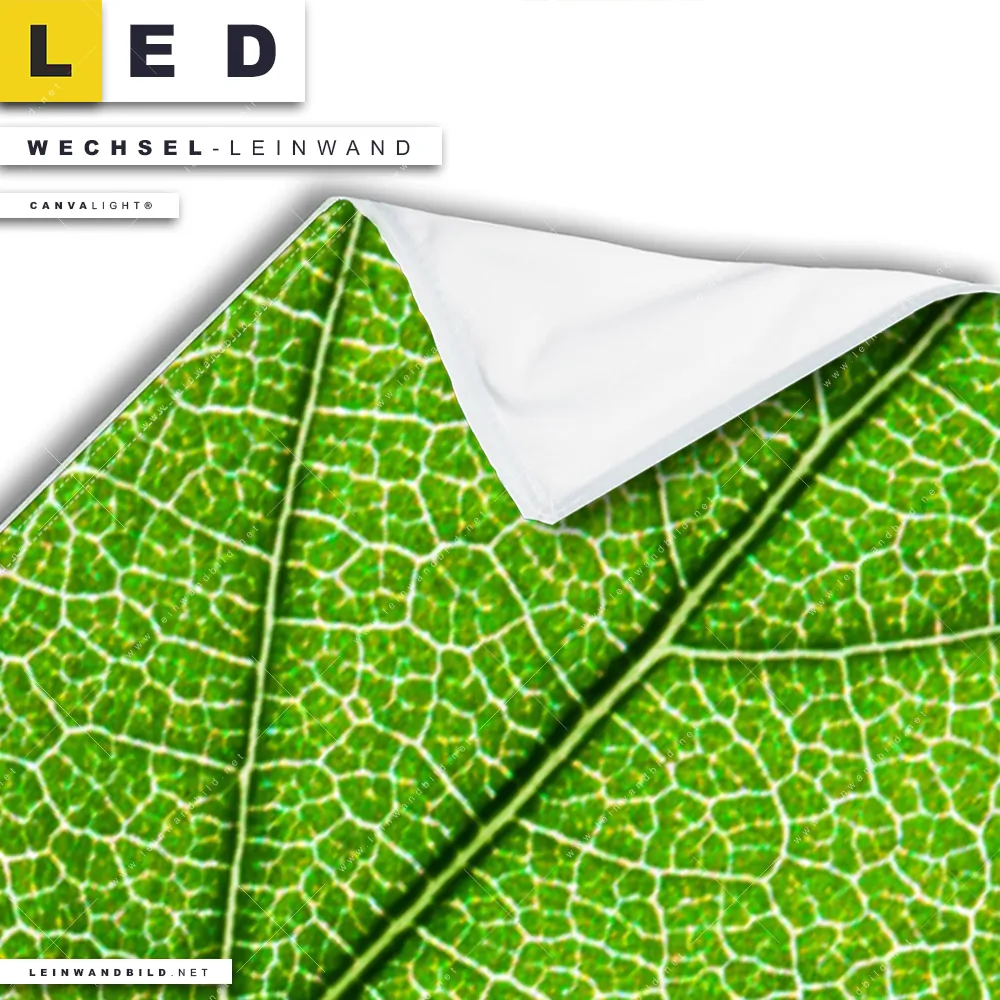 Du konfigurierst Deine individuelle LED Wechsel-Leinwand Canvalight® TEX | Grüne Blattadern | Panorama und wir produzieren sie NEU für Dich. Unsere Blumen - Botanik, Wald - Bäume Austausch-Fotoleinwände für Canvalight® LED Bilder sind KEINE Lagerware. Du bist Dir unsicher, welches Motiv oder Format das richtige für dein individuelles LED Wechselmotiv auf Leinwand ist, dann helfen wir dir gerne weiter und beraten dich!
