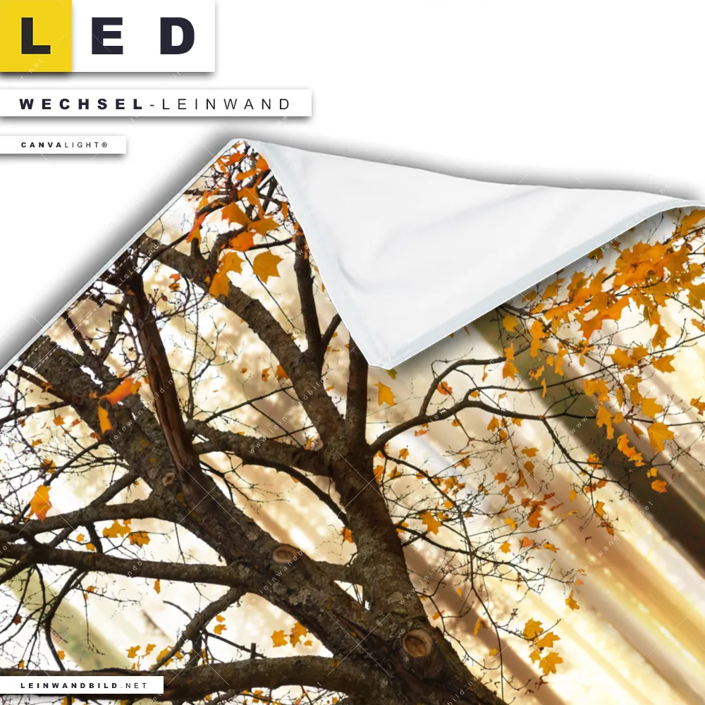 Du konfigurierst Deine individuelle LED Wechsel-Leinwand Canvalight® TEX | Herbstspaziergang | Quadrat und wir produzieren sie NEU für Dich. Unsere Landschaften, Wald - Bäume Austausch-Fotoleinwände für Canvalight® LED Bilder sind KEINE Lagerware. Du bist Dir unsicher, welches Motiv oder Format das richtige für dein individuelles LED Wechselmotiv auf Leinwand ist, dann helfen wir dir gerne weiter und beraten dich!