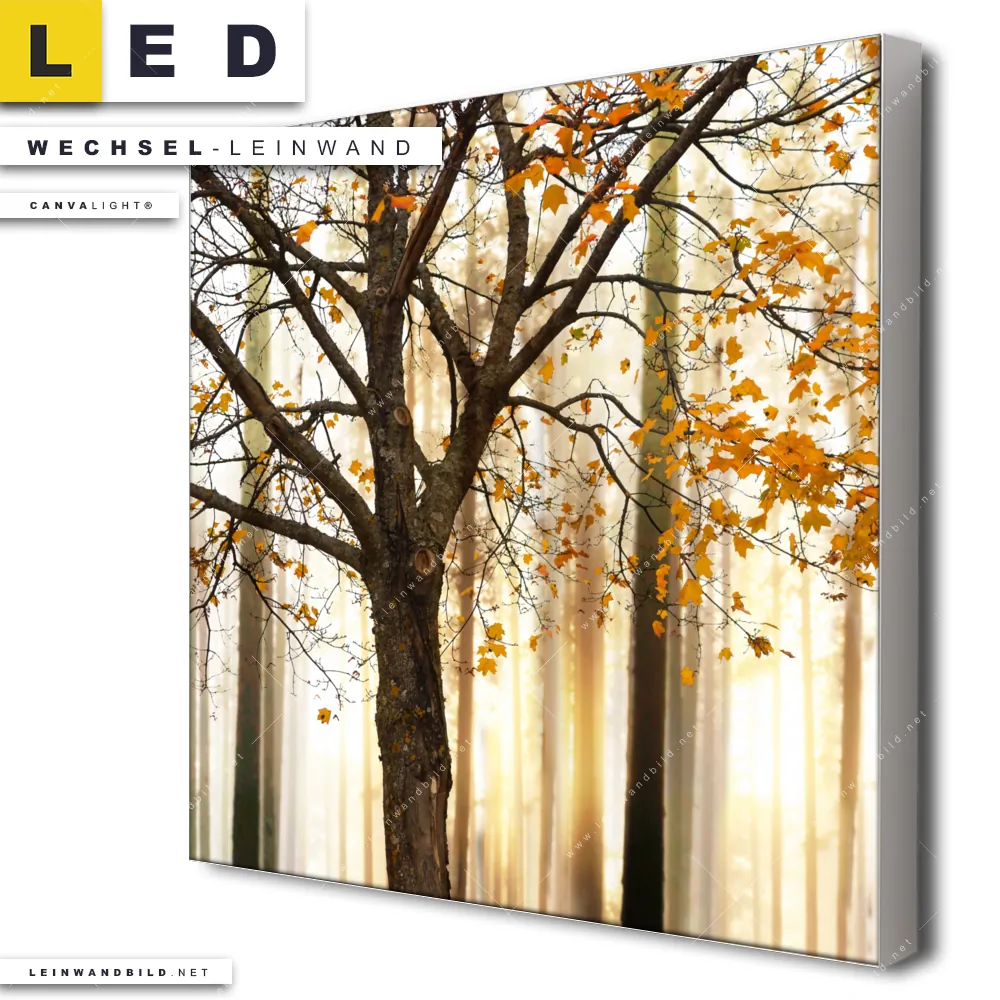 Du bist auf der Suche nach einer Landschaften, Wald - Bäume Wechsel-Leinwand für Dein LED-Leinwandbild im Quadratischen Format? Begriffe wie Wald, Landschaft, Bäume, Natur, Baum, Buche, Ruhe, Stille haben Dich auf der Suche nach Deiner Ersatz-Leinwand für dein LED Wandbild mit wechselbarer Leinwand inspiriert? Farben wie Braun, Orange dürfen auf Deinem neuen Wechselmotiv für Dein XXL Leinwand-LED-Bild nicht fehlen und Leinwände im Retro - Vintage Stil für Leuchtbilder passen perfekt zu Deinem Einrichtungsstil?
