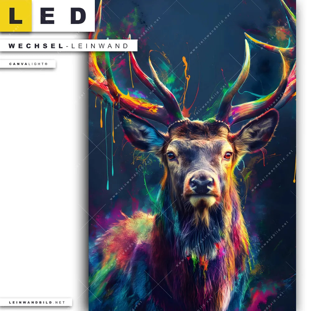 LED Wechsel-Leinwand Canvalight® TEX | Hirsch im leuchtenden Farbmix | Hochformat