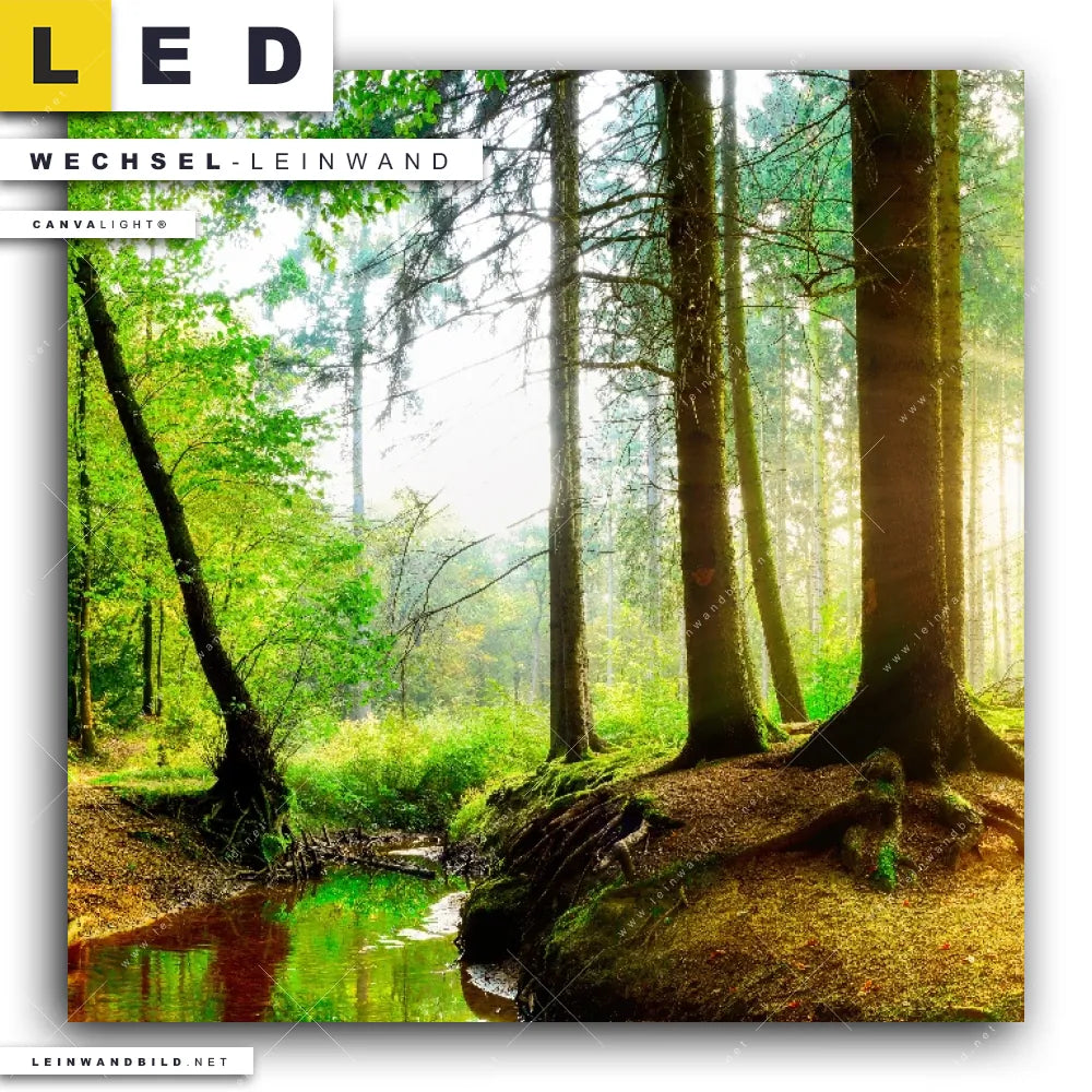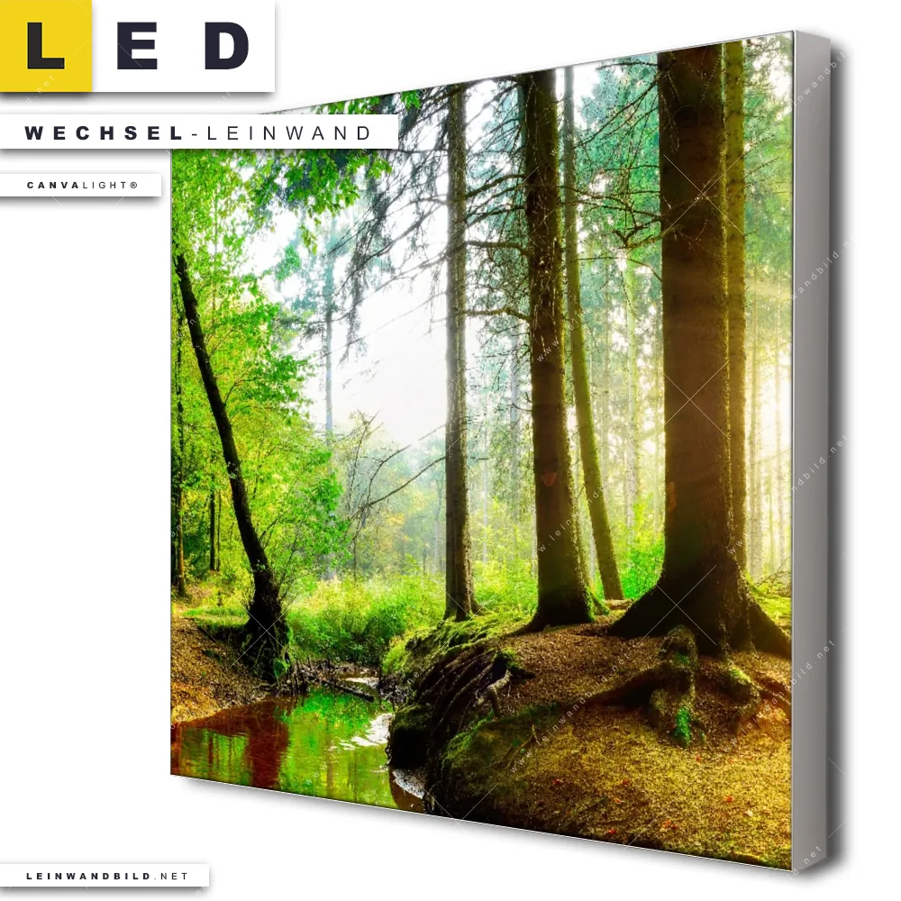 Du bist auf der Suche nach einer Landschaften, Wald - Bäume Wechsel-Leinwand für Dein LED-Leinwandbild im Quadratischen Format? Begriffe wie Baum, Bäume, Natur, Sonne, Sonnenstrahlen, Licht, Fluss, Sonnenlicht, Bach, Baumkrone, Wald haben Dich auf der Suche nach Deiner Ersatz-Leinwand für dein LED Wandbild mit wechselbarer Leinwand inspiriert? Farben wie Grün, Braun, Hellgrün dürfen auf Deinem neuen Wechselmotiv für Dein XXL Leinwand-LED-Bild nicht fehlen und Leinwände im Natürlich - Realistisch Stil für Leuchtbilder passen perfekt zu Deinem Einrichtungsstil?