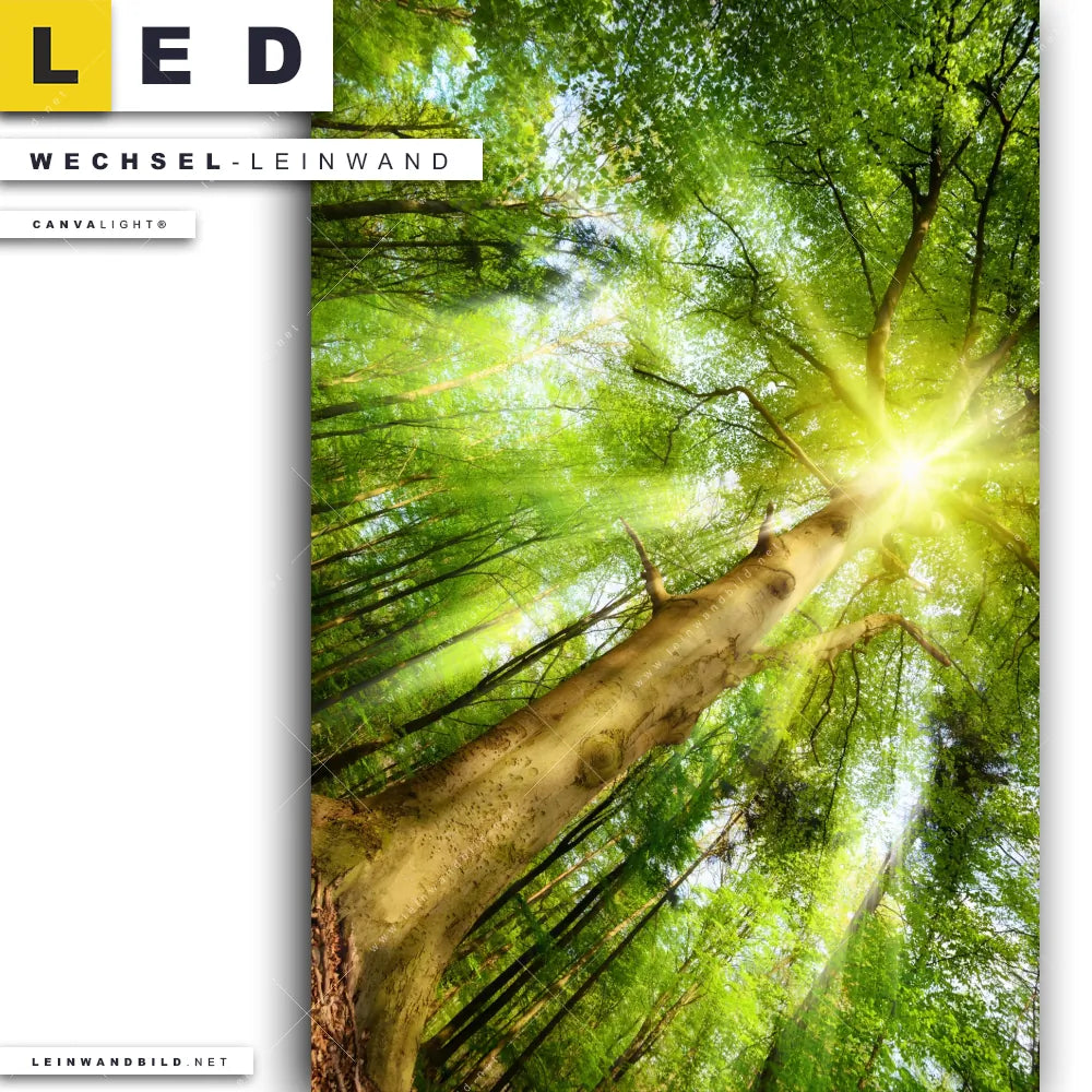 LED Wechsel-Leinwand Canvalight® TEX | Im frischen grünen Wald | Hochformat