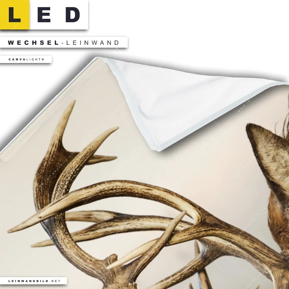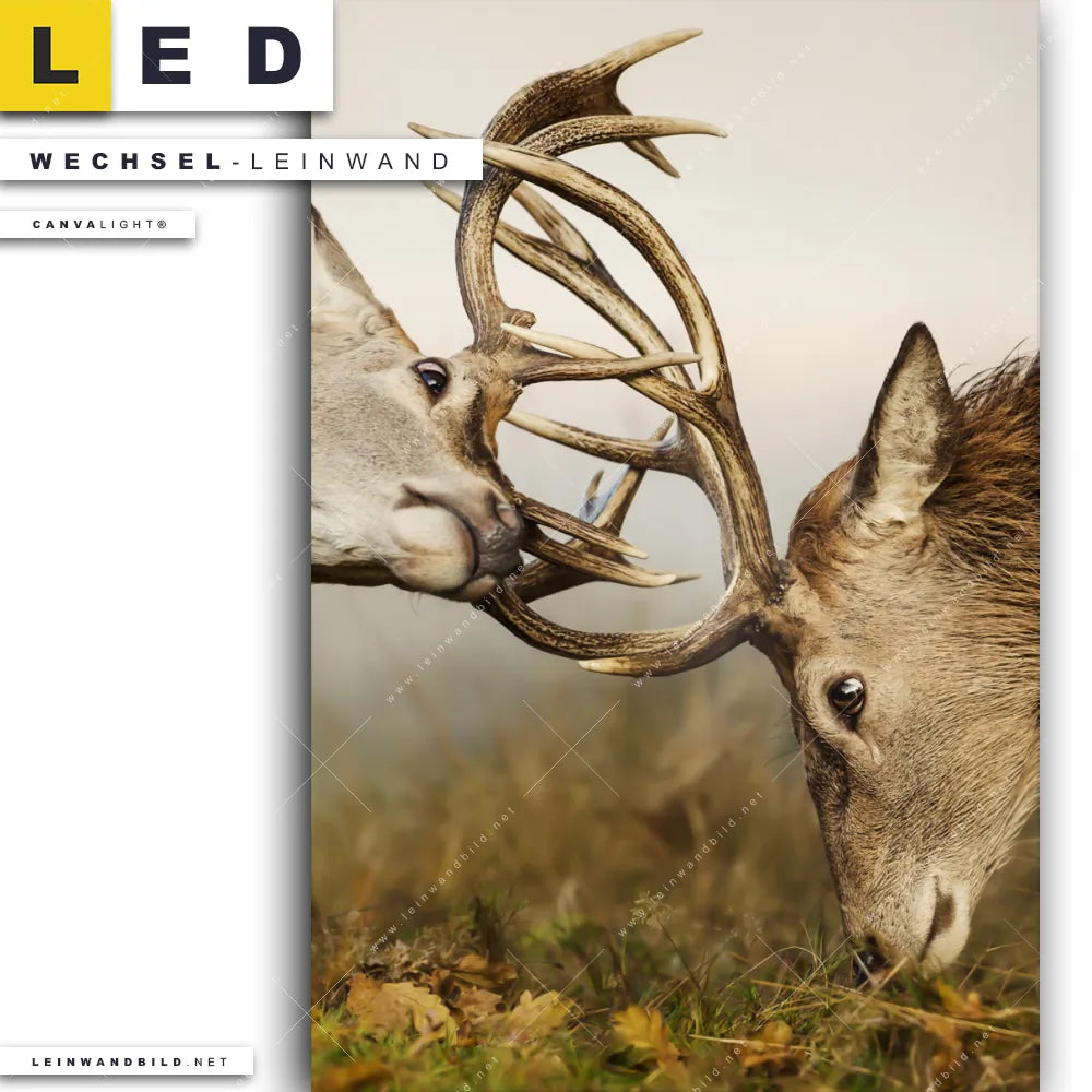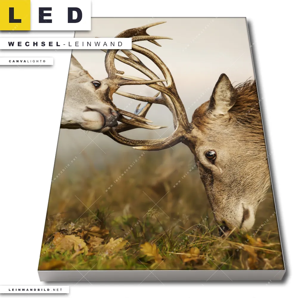 Du bist auf der Suche nach einer Tierwelt Wechsel-Leinwand für Dein LED-Leinwandbild im Hochformat? Begriffe wie Hirsch, Deer, skandinavisch, Rotwild, Reh, Dammwild, Geweih, Kampf haben Dich auf der Suche nach Deiner Ersatz-Leinwand für dein LED Wandbild mit wechselbarer Leinwand inspiriert? Farben wie Braun, Beige dürfen auf Deinem neuen Wechselmotiv für Dein XXL Leinwand-LED-Bild nicht fehlen und Leinwände im Natürlich - Realistisch Stil für Leuchtbilder passen perfekt zu Deinem Einrichtungsstil?