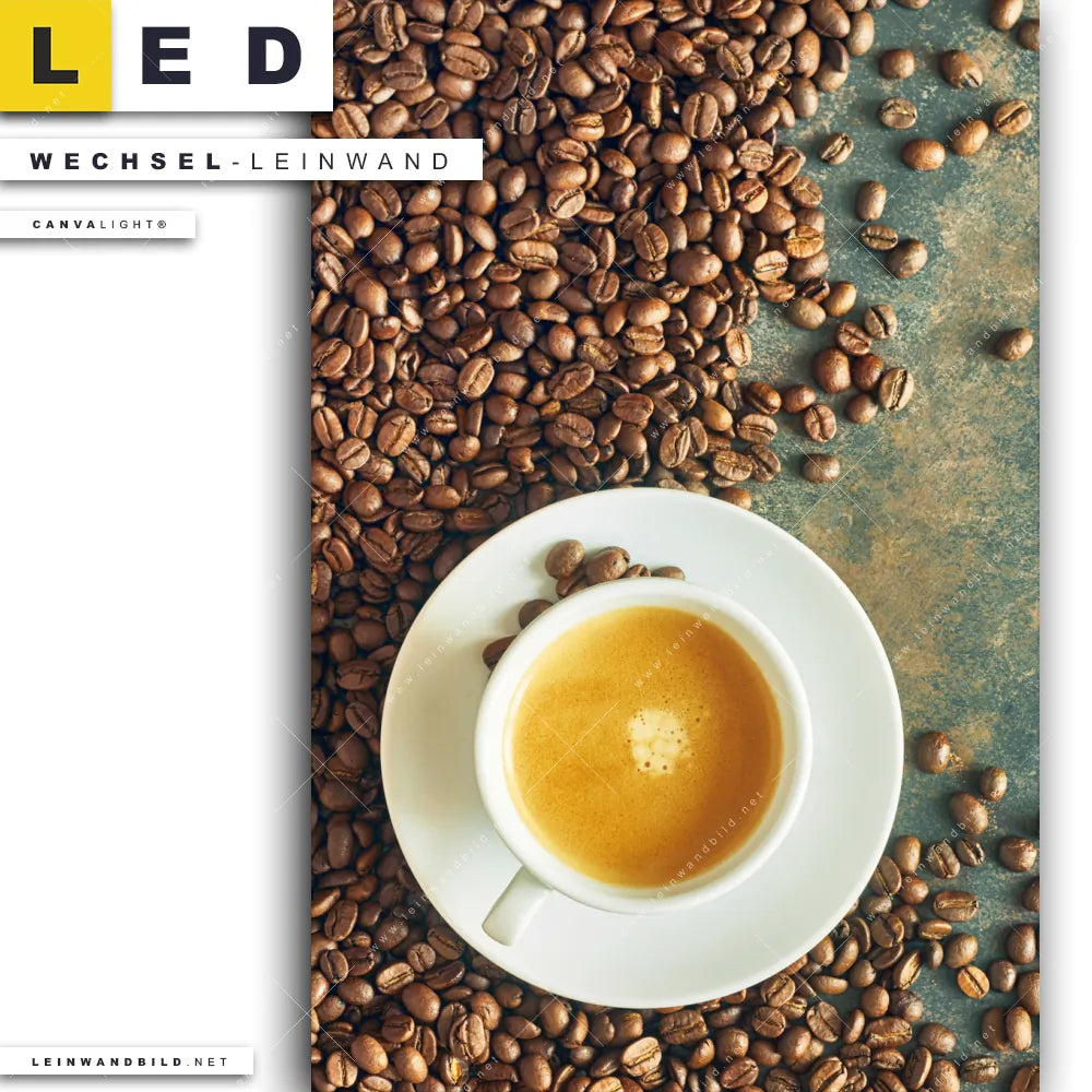 Du bist auf der Suche nach einer Essen - Trinken Wechsel-Leinwand für Dein LED-Leinwandbild im Hochformat? Begriffe wie Kaffee, Coffee, Motivation, Küche, Kaffebohnen, Spruch haben Dich auf der Suche nach Deiner Ersatz-Leinwand für dein LED Wandbild mit wechselbarer Leinwand inspiriert? Farben wie Braun, Beige, Weiss, Gold, Hellblau dürfen auf Deinem neuen Wechselmotiv für Dein XXL Leinwand-LED-Bild nicht fehlen und Leinwände im Minimalistisch, Natürlich - Realistisch, Modern Art Stil für Leuchtbilder passen perfekt zu Deinem Einrichtungsstil?