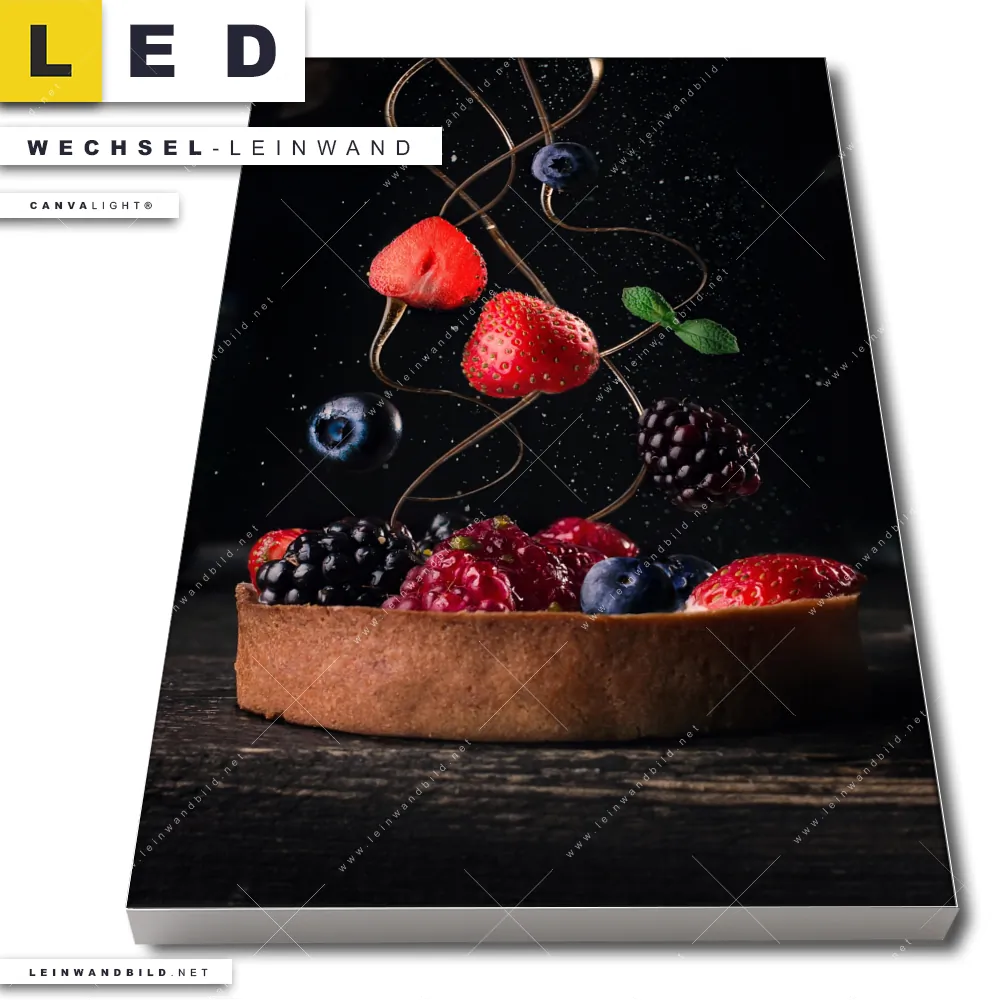 LED Wechsel-Leinwand Canvalight® TEX | Kuchen mit frischen Beeren | Hochformat