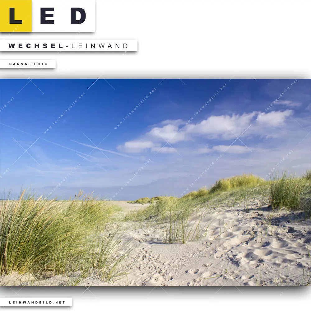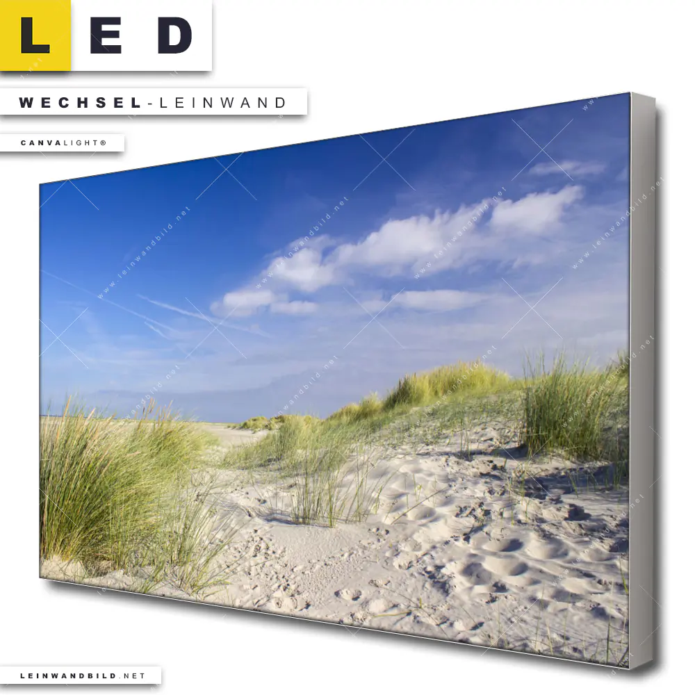 LED Wechsel-Leinwand Canvalight® TEX | Küstenwanderung durch Sanddünen | Querformat