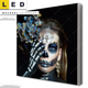Bitte beachte, dass die Farben, der auf dem Monitor abgebildeten Frau mit Totenkopf und Knochen Darstellung, möglicherweise von den Originalfarben deiner Canvalight® TEX Wechsel-Leinwand abweichen können.