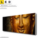 LED Wechsel-Leinwand Canvalight® TEX | Lächelnder Buddha in Gold | Hochformat