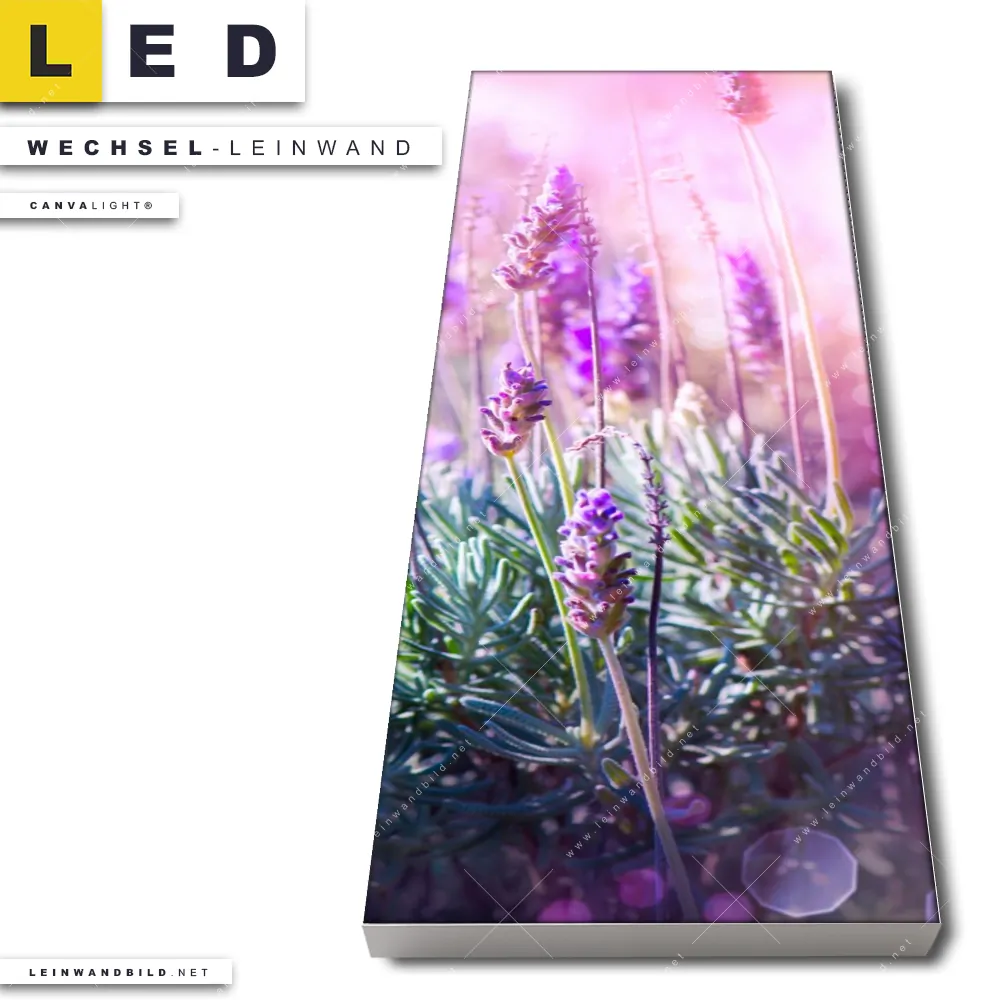 Du bist auf der Suche nach einer Blumen - Botanik, Landschaften Wechsel-Leinwand für Dein LED-Leinwandbild im Schmalen Format? Begriffe wie Pflanze, Natur, Wiese, Blüte, Blumen, Lavendel, Heilkräuter haben Dich auf der Suche nach Deiner Ersatz-Leinwand für dein LED Wandbild im Panorama-Hochformat mit wechselbarer Leinwand inspiriert? Farben wie Lila, Grün, Rosa, Türkis dürfen auf Deinem neuen Wechselmotiv für Dein XXL Leinwand-LED-Bild nicht fehlen und Leinwände im Floral, Retro - Vintage Stil für Leuchtbilder passen perfekt zu Deinem Einrichtungsstil?