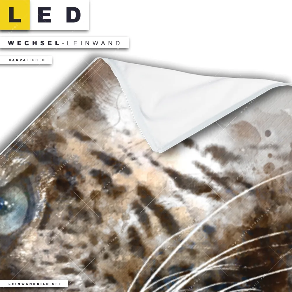 Du konfigurierst Deine individuelle LED Wechsel-Leinwand Canvalight® TEX | Leopard Aquarell | Panorama und wir produzieren sie NEU für Dich. Unsere Tierwelt Austausch-Fotoleinwände für Canvalight® LED Bilder sind KEINE Lagerware. Du bist Dir unsicher, welches Motiv oder Format das richtige für dein individuelles LED Wechselmotiv auf Leinwand ist, dann helfen wir dir gerne weiter und beraten dich!