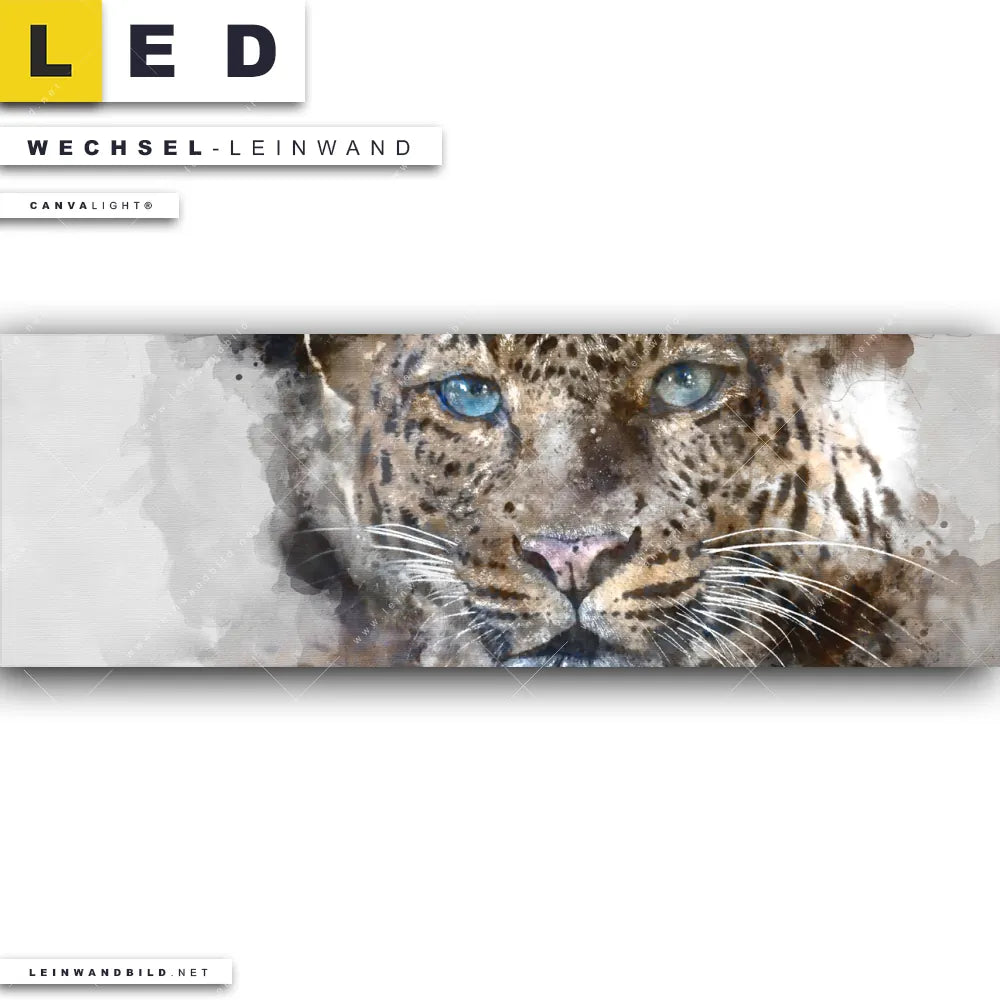 Du bist auf der Suche nach einer Tierwelt Wechsel-Leinwand für Dein LED-Leinwandbild im Panorama-Format? Begriffe wie Tier, Kunst, Aquarell, Leopard, Jaguar, Gepard, Raubkatze, Wildkatze, Afrika haben Dich auf der Suche nach Deiner Ersatz-Leinwand für dein extra breites LED Wandbild mit wechselbarer Leinwand inspiriert? Farben wie Beige, Weiss, Hellblau, Grau , Rosa dürfen auf Deinem neuen Wechselmotiv für Dein XXL Leinwand-LED-Bild nicht fehlen und Leinwände im Modern Art, Grunge Stil für Leuchtbilder passen perfekt zu Deinem Einrichtungsstil?