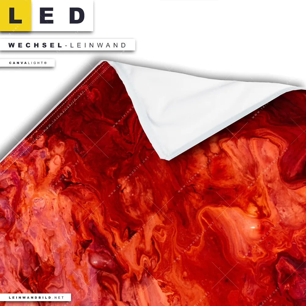 Du bist auf der Suche nach einer Muster - Texturen Wechsel-Leinwand für Dein LED-Leinwandbild im Querformat? Begriffe wie Marmor, Flüssigkeit, Acryl, flüssig, Farbe, Marmorierung, Fluid Art haben Dich auf der Suche nach Deiner Ersatz-Leinwand für dein breites LED Wandbild mit wechselbarer Leinwand inspiriert? Farben wie Rot dürfen auf Deinem neuen Wechselmotiv für Dein XXL Leinwand-LED-Bild nicht fehlen und Leinwände im Abstrakt, Modern Art Stil für Leuchtbilder passen perfekt zu Deinem Einrichtungsstil?