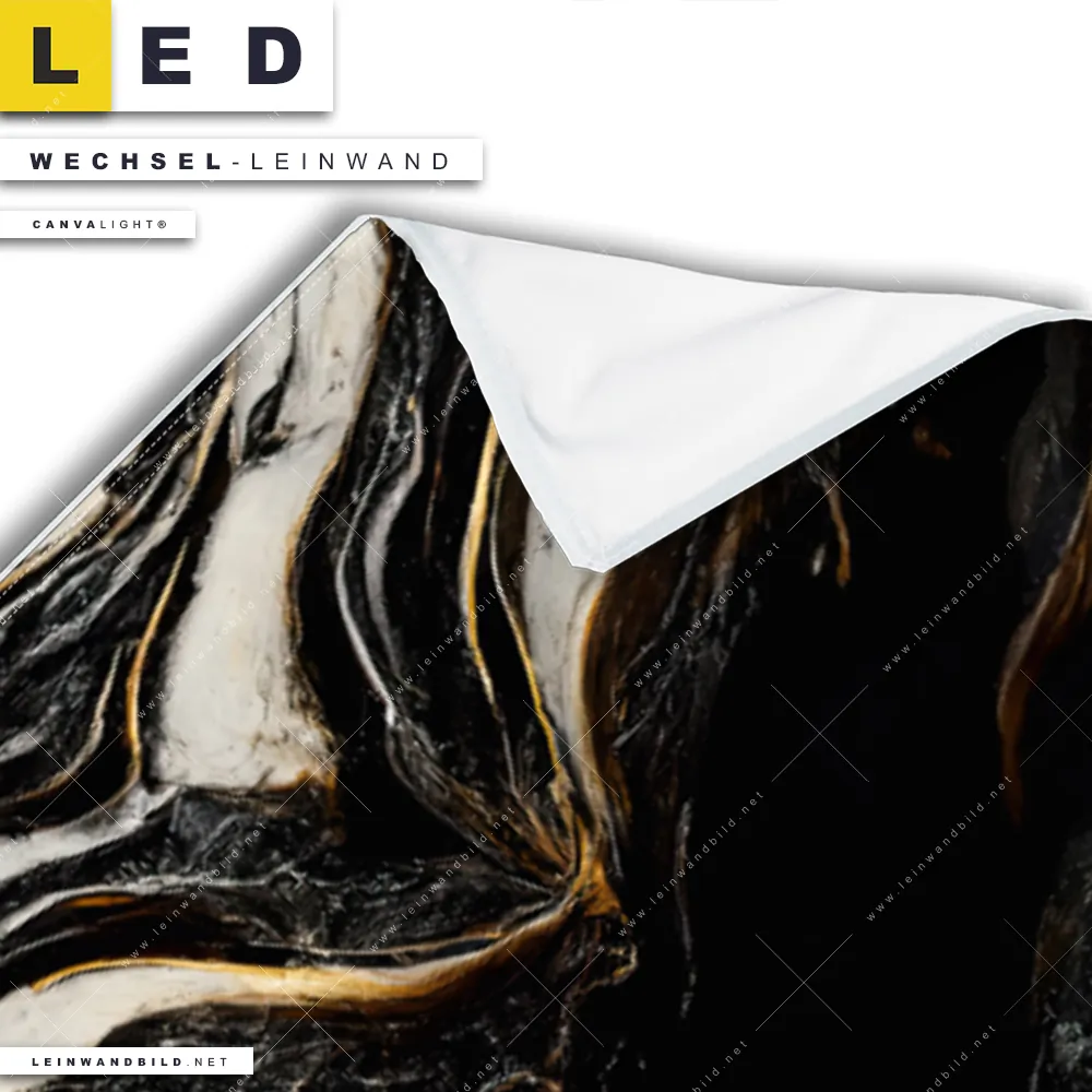 LED Wechsel-Leinwand Canvalight® TEX | Liquid Marmor Schwarz Gold | Panorama
