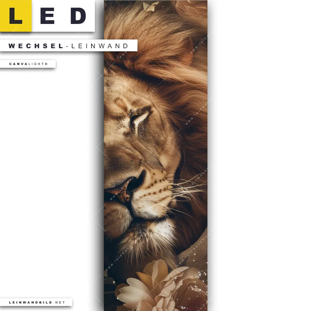 Du bist auf der Suche nach einer Tierwelt, Blumen - Botanik Wechsel-Leinwand für Dein LED-Leinwandbild im Schmalen Format? Begriffe wie Pflanze, Natur, Nahaufnahme, Raubkatze, Löwe, Blumen, Blüten haben Dich auf der Suche nach Deiner Ersatz-Leinwand für dein LED Wandbild im Panorama-Hochformat mit wechselbarer Leinwand inspiriert? Farben wie Braun, Beige, Rosa dürfen auf Deinem neuen Wechselmotiv für Dein XXL Leinwand-LED-Bild nicht fehlen und Leinwände im Floral, Modern Art Stil für Leuchtbilder passen perfekt zu Deinem Einrichtungsstil?