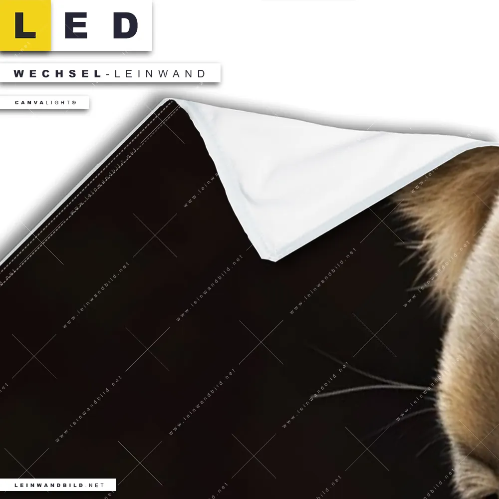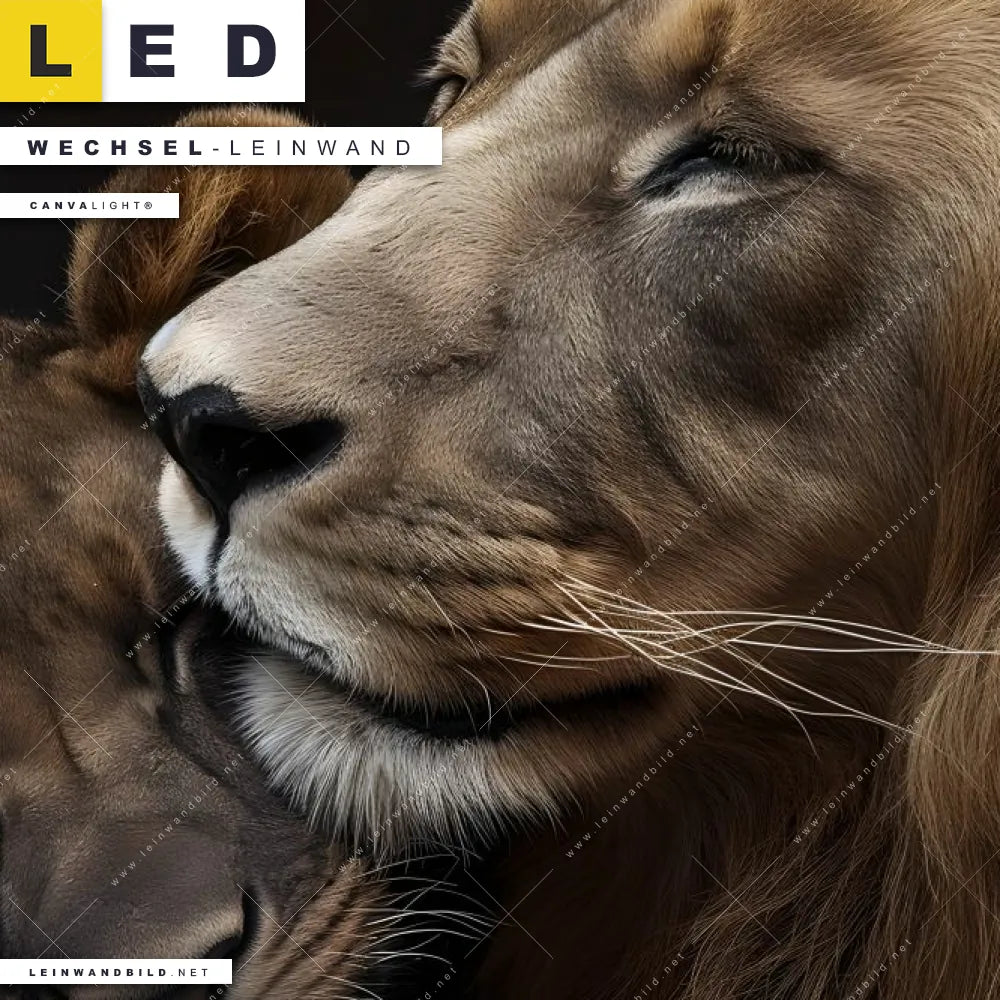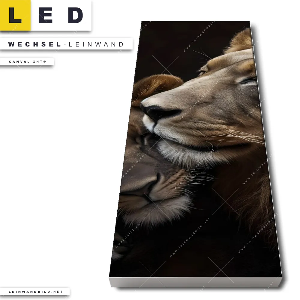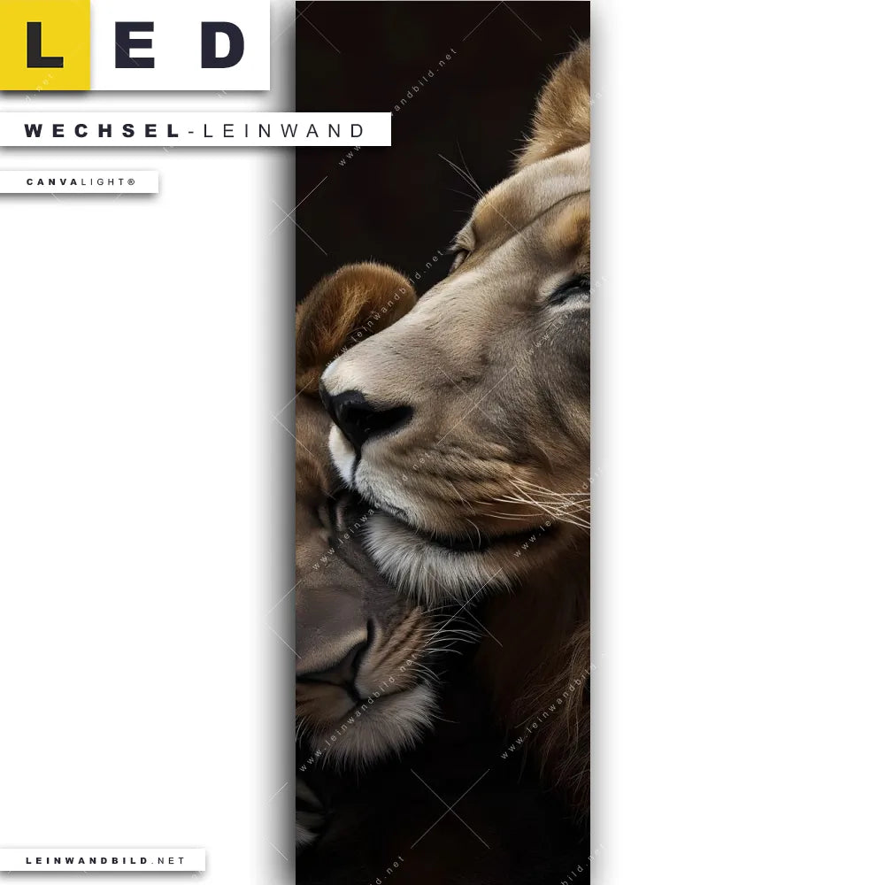 LED Wechsel-Leinwand Canvalight® TEX | Löwen - Stärke und Zärtlichkeit | Schmal
