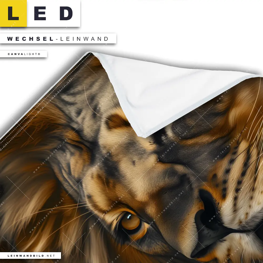 LED Wechsel-Leinwand Canvalight® TEX | Löwenportrait: Kraft und Eleganz | Quadrat