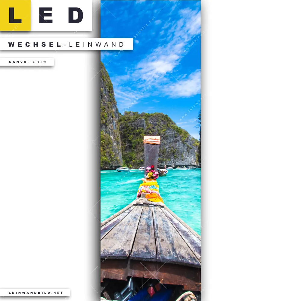 Du bist auf der Suche nach einer Landschaften, Strand - Meer Wechsel-Leinwand für Dein LED-Leinwandbild im Schmalen Format? Begriffe wie Meer, Strand, Thailand, Bucht, Asien, Sommer, Boot, Felsen, Berg, Südsee - Karibik, Urlaub - Reisen haben Dich auf der Suche nach Deiner Ersatz-Leinwand für dein LED Wandbild im Panorama-Hochformat mit wechselbarer Leinwand inspiriert? Farben wie Blau, Türkis, Weiss, Grün dürfen auf Deinem neuen Wechselmotiv für Dein XXL Leinwand-LED-Bild nicht fehlen und Leinwände im Natürlich - Realistisch Stil für Leuchtbilder passen perfekt zu Deinem Einrichtungsstil?