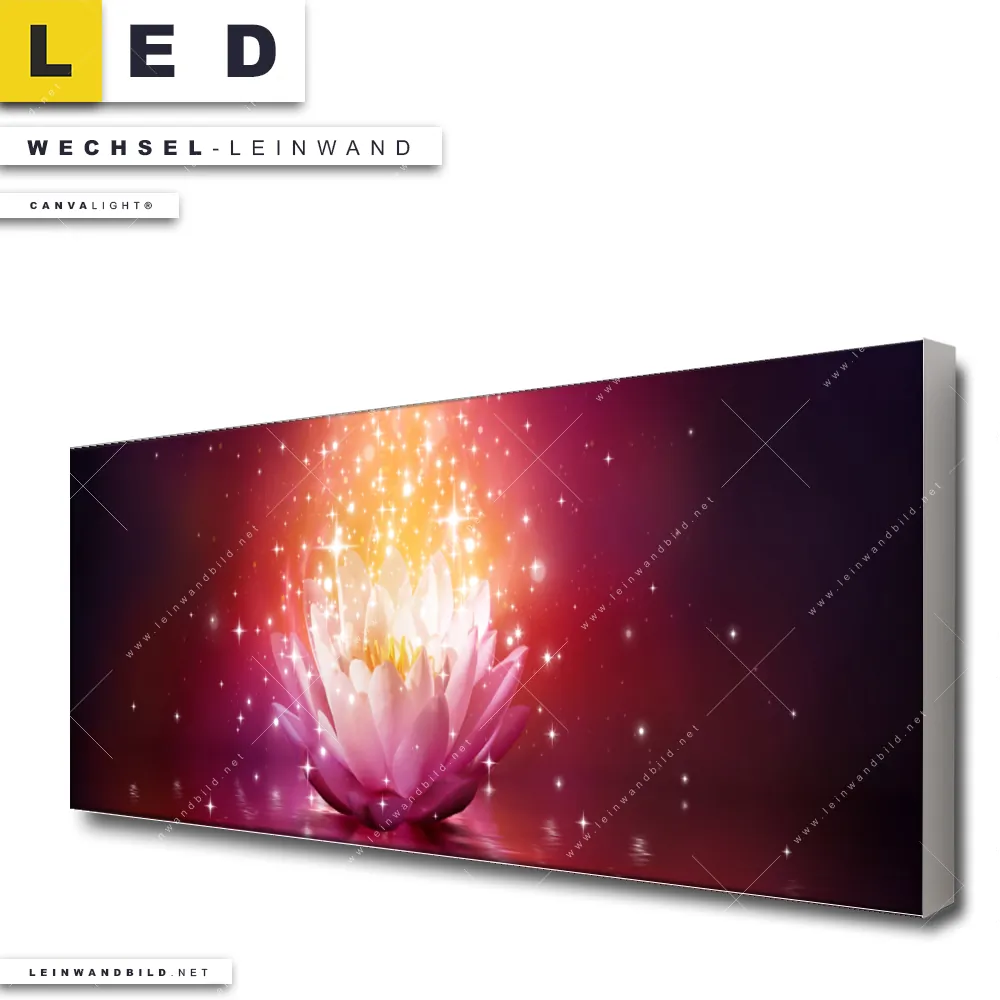 Du bist auf der Suche nach einer Blumen - Botanik Wechsel-Leinwand für Dein LED-Leinwandbild im Panorama-Format? Begriffe wie Blume, Blüte, Kunst, kreativ, Lilie, Glitter, Glitzer, Wasserspiegelung, Spiegelung haben Dich auf der Suche nach Deiner Ersatz-Leinwand für dein extra breites LED Wandbild mit wechselbarer Leinwand inspiriert? Farben wie Pink, Rot, Orange dürfen auf Deinem neuen Wechselmotiv für Dein XXL Leinwand-LED-Bild nicht fehlen und Leinwände im Abstrakt, Modern Art, Floral Stil für Leuchtbilder passen perfekt zu Deinem Einrichtungsstil?