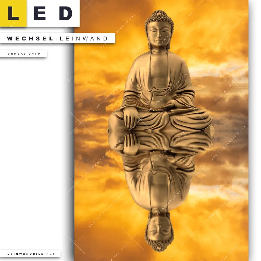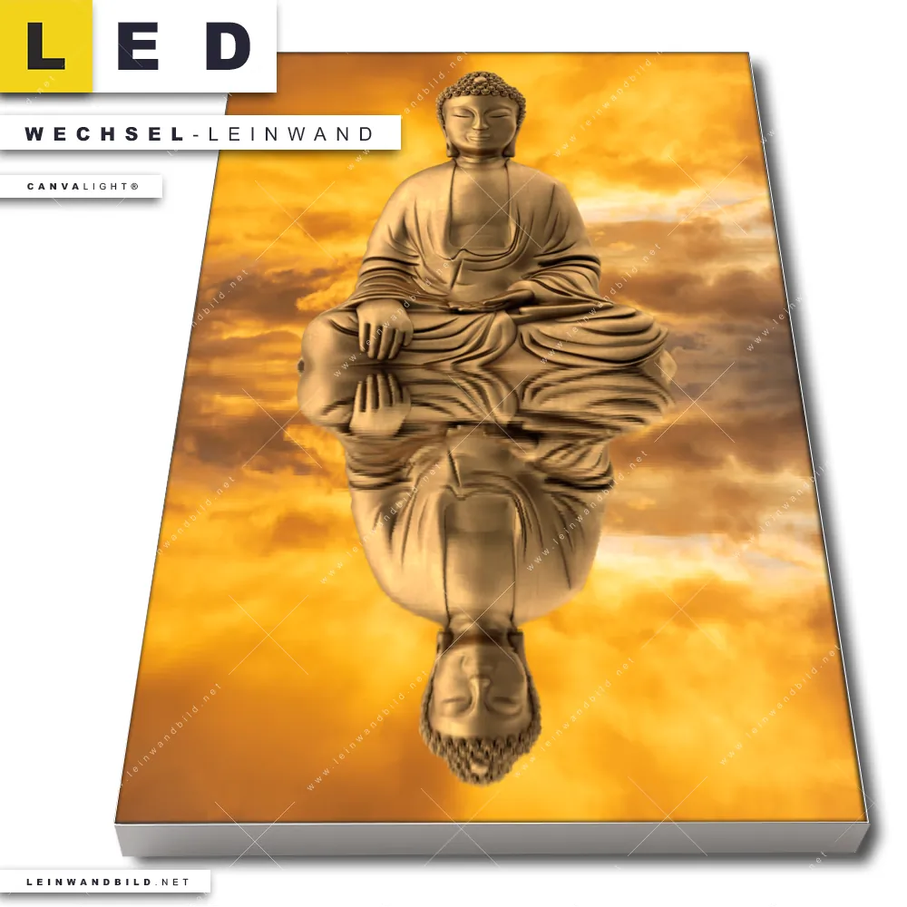 Du bist auf der Suche nach einer Buddha - Feng Shui Wechsel-Leinwand für Dein LED-Leinwandbild im Hochformat? Begriffe wie Buddha, Buddhismus, Religion, Feng Shui, Zen, Meditation, Licht, Erleuchtung, Sonnenlicht, Sonnenuntergang, Spiegelung, Skulptur haben Dich auf der Suche nach Deiner Ersatz-Leinwand für dein LED Wandbild mit wechselbarer Leinwand inspiriert? Farben wie Gold, Orange, Beige dürfen auf Deinem neuen Wechselmotiv für Dein XXL Leinwand-LED-Bild nicht fehlen und Leinwände im Modern Art Stil für Leuchtbilder passen perfekt zu Deinem Einrichtungsstil?