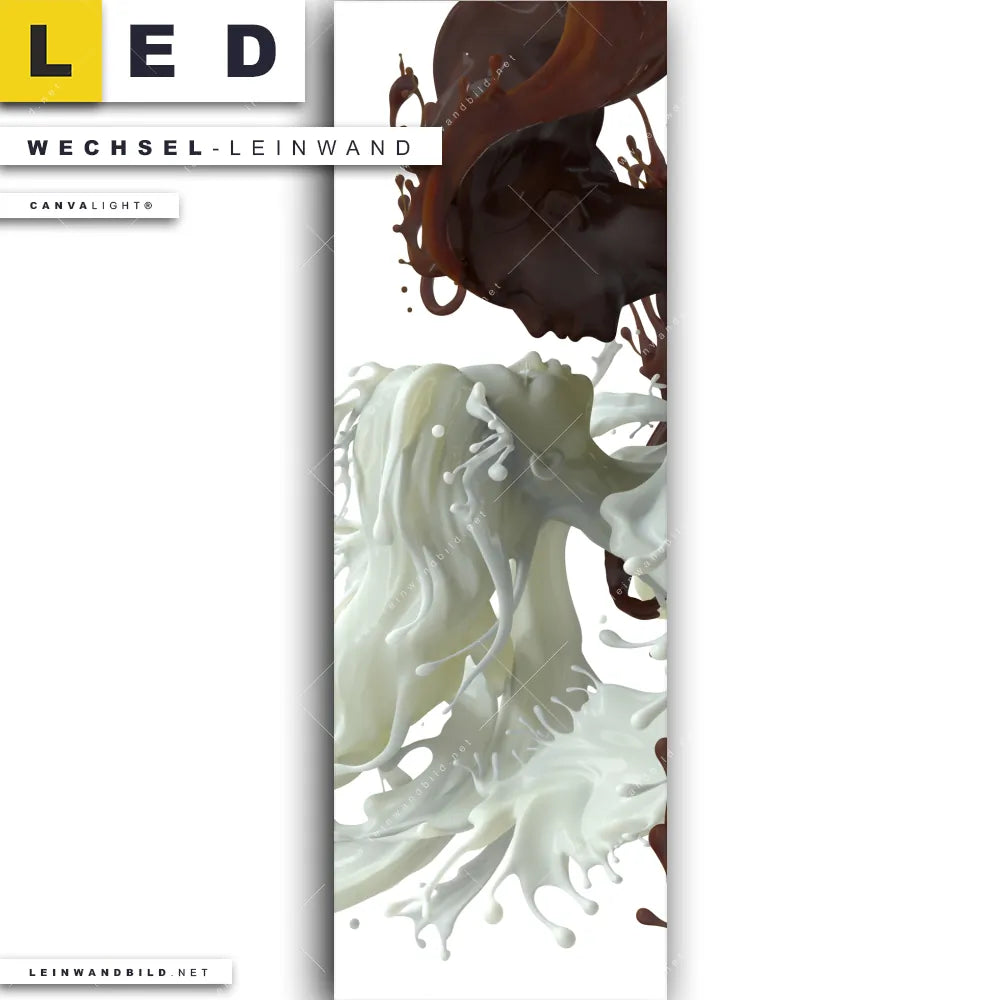 Du bist auf der Suche nach einer Essen - Trinken Wechsel-Leinwand für Dein LED-Leinwandbild im Schmalen Format? Begriffe wie Kuss, Liebe, Milch, Schokolade, Flüssigkeit, Mann, Frau, Paar, Kaffee haben Dich auf der Suche nach Deiner Ersatz-Leinwand für dein LED Wandbild im Panorama-Hochformat mit wechselbarer Leinwand inspiriert? Farben wie Weiss, Braun dürfen auf Deinem neuen Wechselmotiv für Dein XXL Leinwand-LED-Bild nicht fehlen und Leinwände im Mixed Media, Modern Art Stil für Leuchtbilder passen perfekt zu Deinem Einrichtungsstil?