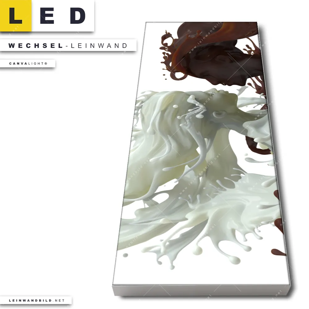 Du konfigurierst Deine individuelle LED Wechsel-Leinwand Canvalight® TEX | Milch küsst Schokolade | Schmal und wir produzieren sie NEU für Dich. Unsere Essen - Trinken Austausch-Fotoleinwände für Canvalight® LED Bilder sind KEINE Lagerware. Du bist Dir unsicher, welches Motiv oder Format das richtige für dein individuelles LED Wechselmotiv auf Leinwand ist, dann helfen wir dir gerne weiter und beraten dich!