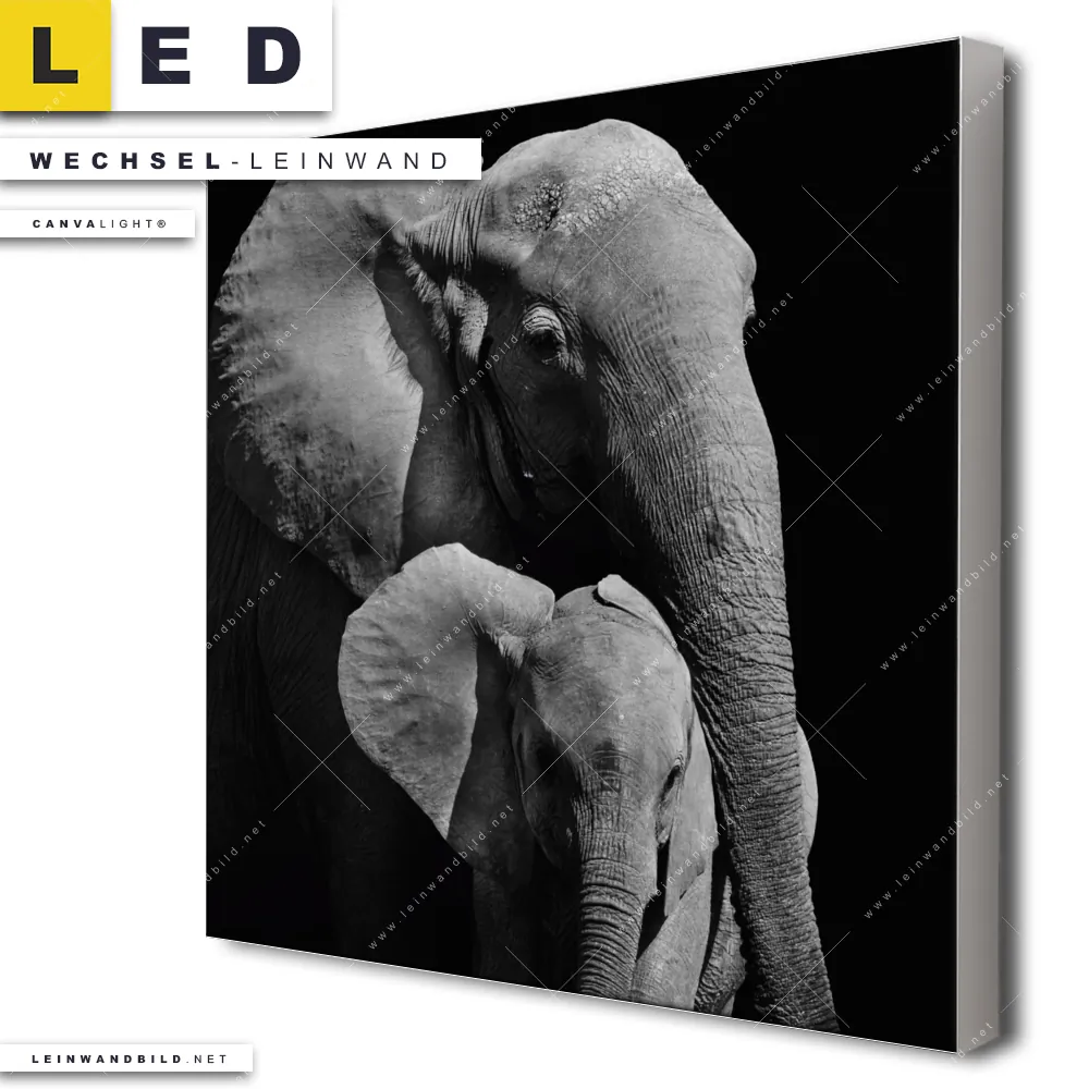 Du konfigurierst Deine individuelle LED Wechsel-Leinwand Canvalight® TEX | Mutter & Baby Elefant | Quadrat und wir produzieren sie NEU für Dich. Unsere Tierwelt Austausch-Fotoleinwände für Canvalight® LED Bilder sind KEINE Lagerware. Du bist Dir unsicher, welches Motiv oder Format das richtige für dein individuelles LED Wechselmotiv auf Leinwand ist, dann helfen wir dir gerne weiter und beraten dich!