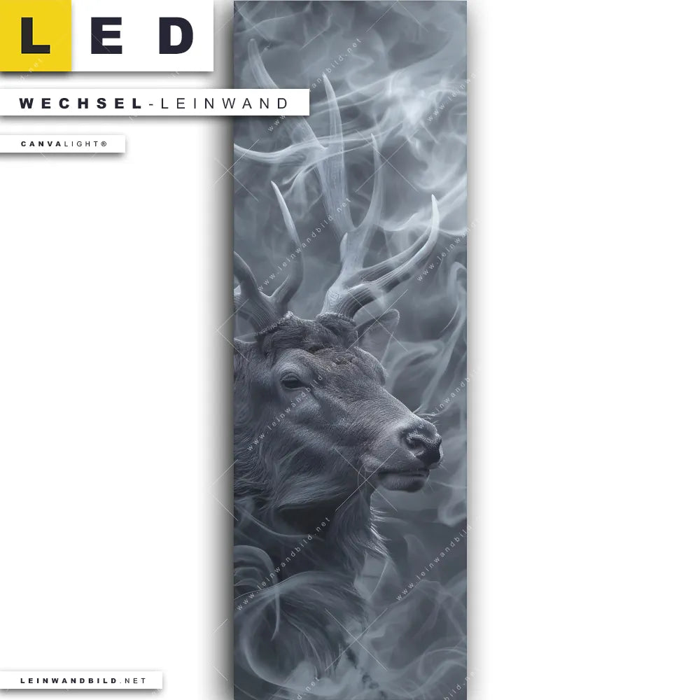 Du bist auf der Suche nach einer Tierwelt Wechsel-Leinwand für Dein LED-Leinwandbild im Schmalen Format? Begriffe wie Hirsch, Nebel, Geweih, Magie, Rotwild, Wald, Rothirsch, Rauch, Qualm haben Dich auf der Suche nach Deiner Ersatz-Leinwand für dein LED Wandbild im Panorama-Hochformat mit wechselbarer Leinwand inspiriert? Farben wie Schwarz dürfen auf Deinem neuen Wechselmotiv für Dein XXL Leinwand-LED-Bild nicht fehlen und Leinwände im Modern Art, Natürlich - Realistisch Stil für Leuchtbilder passen perfekt zu Deinem Einrichtungsstil?