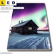 LED Wechsel-Leinwand Canvalight® TEX | Nordlichter über einem Holzhaus | Panorama