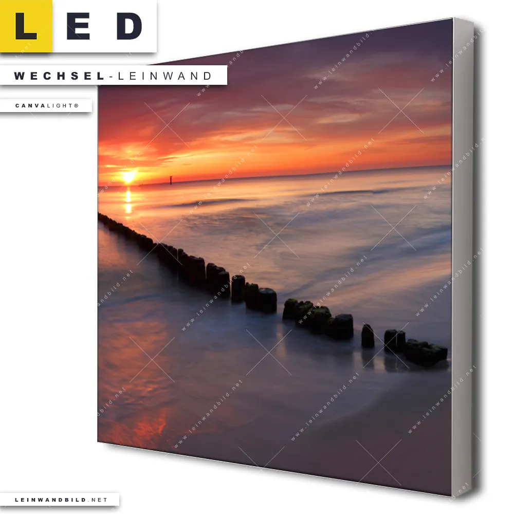 Du bist auf der Suche nach einer Strand - Meer, Landschaften Wechsel-Leinwand für Dein LED-Leinwandbild im Quadratischen Format? Begriffe wie Deutschland, Sommer, Urlaub - Reisen, Ostsee - Nordsee, Sonnenuntergang - Sonnenaufgang, Wellenbrecher, Buhnen haben Dich auf der Suche nach Deiner Ersatz-Leinwand für dein LED Wandbild mit wechselbarer Leinwand inspiriert? Farben wie Blau, Braun, Orange, Rot dürfen auf Deinem neuen Wechselmotiv für Dein XXL Leinwand-LED-Bild nicht fehlen und Leinwände im Natürlich - Realistisch Stil für Leuchtbilder passen perfekt zu Deinem Einrichtungsstil?