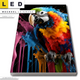 LED Wechsel-Leinwand Canvalight® TEX | Papagei mit bunten Farbspritzern | Panorama