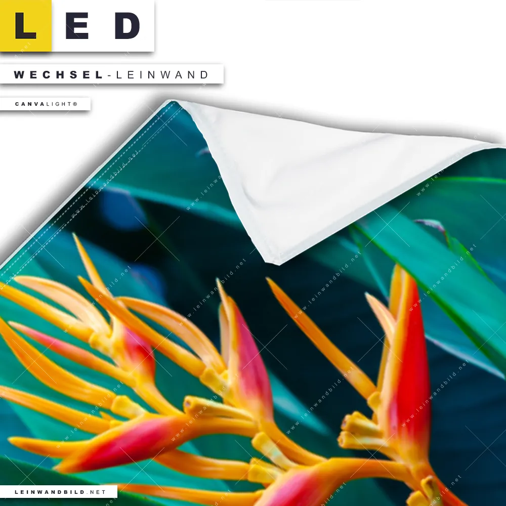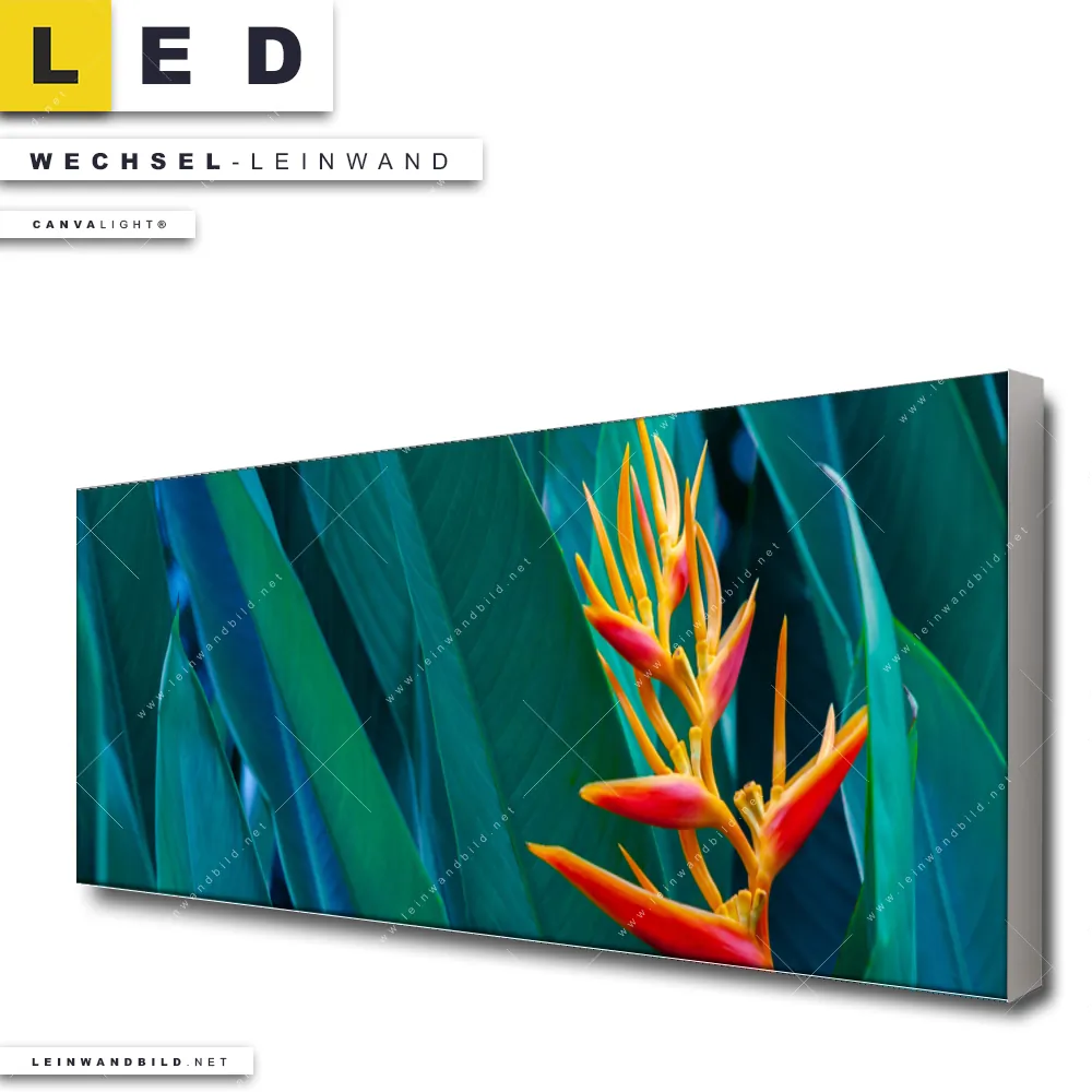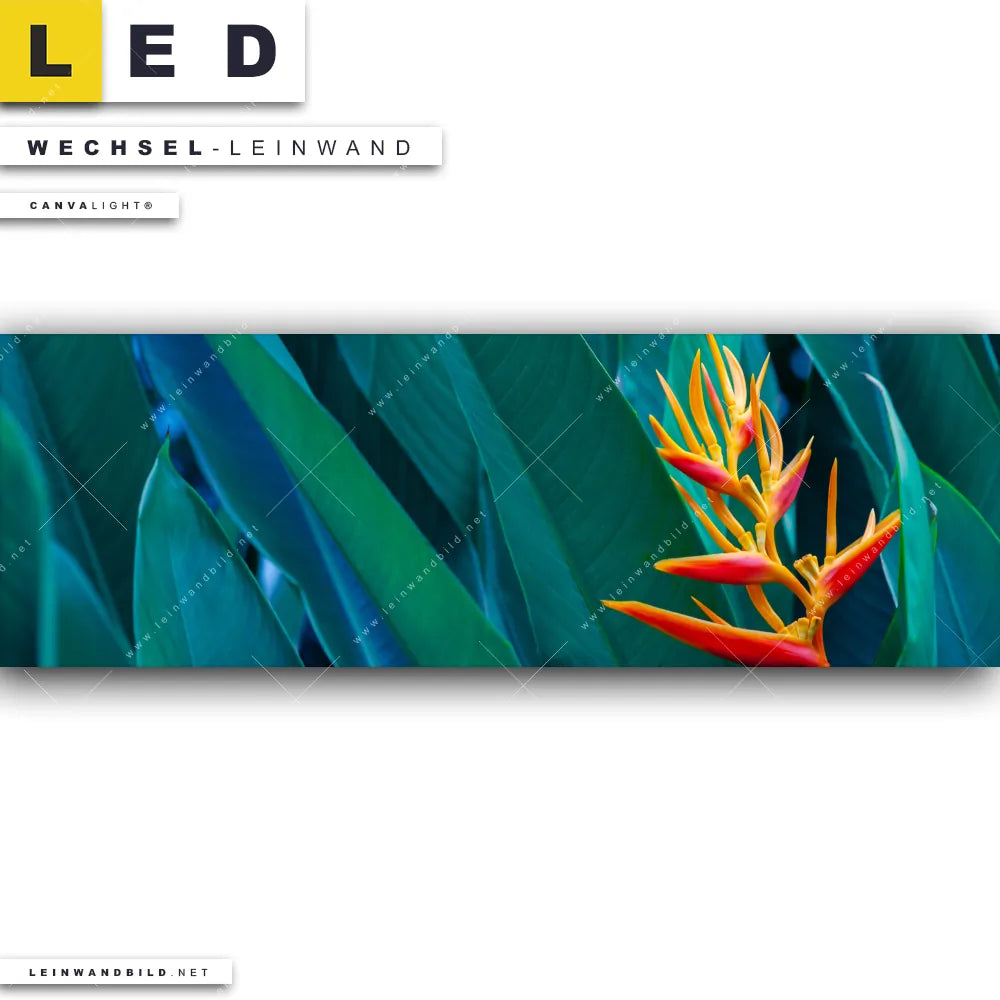 Du bist auf der Suche nach einer Blumen - Botanik Wechsel-Leinwand für Dein LED-Leinwandbild im Panorama-Format? Begriffe wie Blume, Blüte, Pflanze, Paradiesvogelblume haben Dich auf der Suche nach Deiner Ersatz-Leinwand für dein extra breites LED Wandbild mit wechselbarer Leinwand inspiriert? Farben wie Grün, Orange, Rot, Blau, Rosa dürfen auf Deinem neuen Wechselmotiv für Dein XXL Leinwand-LED-Bild nicht fehlen und Leinwände im Floral, Natürlich - Realistisch Stil für Leuchtbilder passen perfekt zu Deinem Einrichtungsstil?