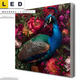 LED Wechsel-Leinwand Canvalight® TEX | Prachtvoller Pfau und Blüten | Querformat