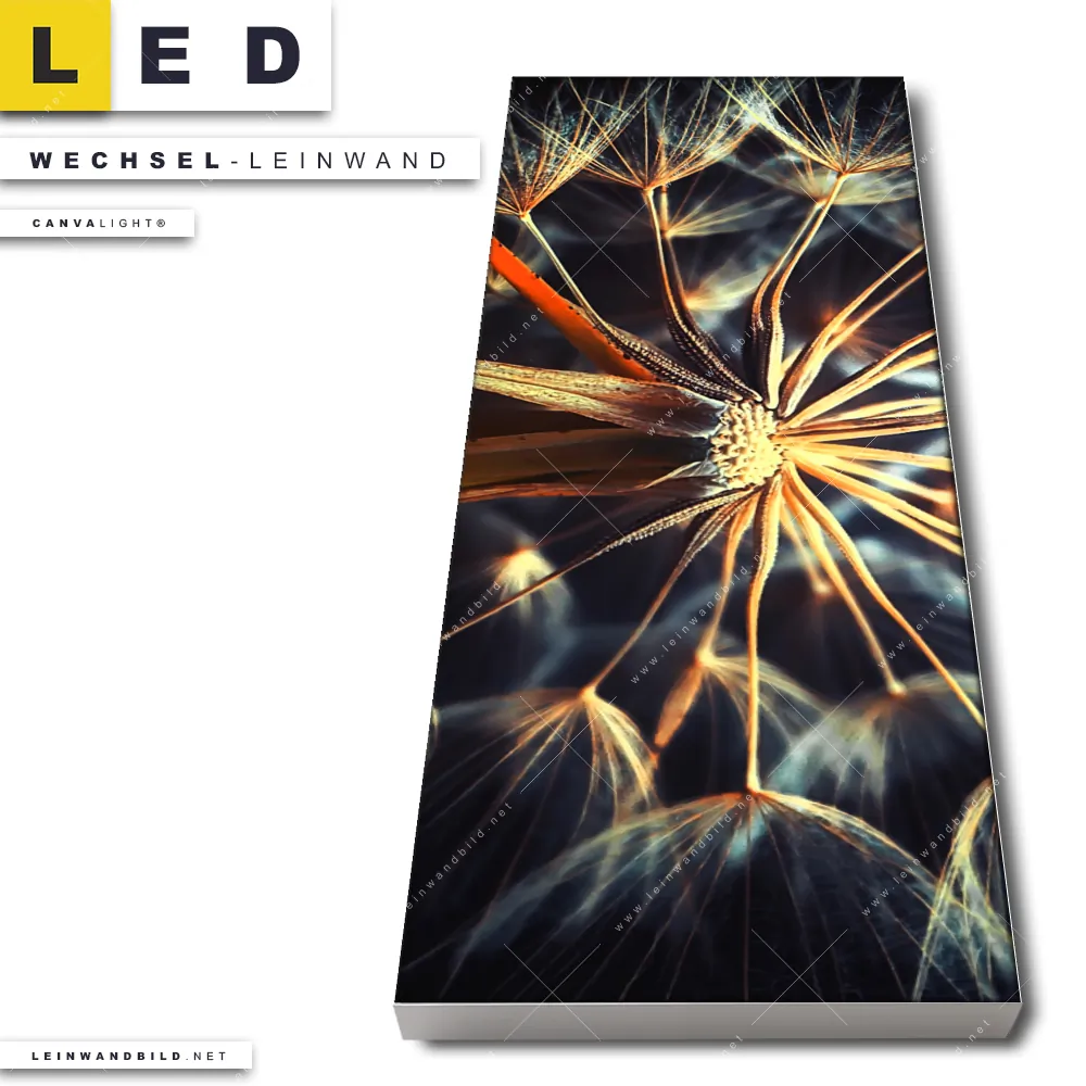 Du konfigurierst Deine individuelle LED Wechsel-Leinwand Canvalight® TEX | Pusteblume No. 9 | Schmal und wir produzieren sie NEU für Dich. Unsere Blumen - Botanik Austausch-Fotoleinwände für Canvalight® LED Bilder sind KEINE Lagerware. Du bist Dir unsicher, welches Motiv oder Format das richtige für dein individuelles LED Wechselmotiv auf Leinwand ist, dann helfen wir dir gerne weiter und beraten dich!