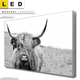 Dann sollte die Wechsel-Leinwand Canvalight® TEX | Rind im Hochland | Quadrat den Weg zu Dir finden. Die Austausch-Leinwand Highland Rind schwarz-weiß - passend für unsere stufenlos dimmbaren, steckerfertigen Leinwandbilder im Leuchtrahmen mit Fernbedienung und optionaler Farbtemperatursteuerung - fügt sich als Eye-Catcher harmonisch in jedes Bar - Gastronomie, Wohnzimmer - Schlafzimmer Raumkonzept ein.