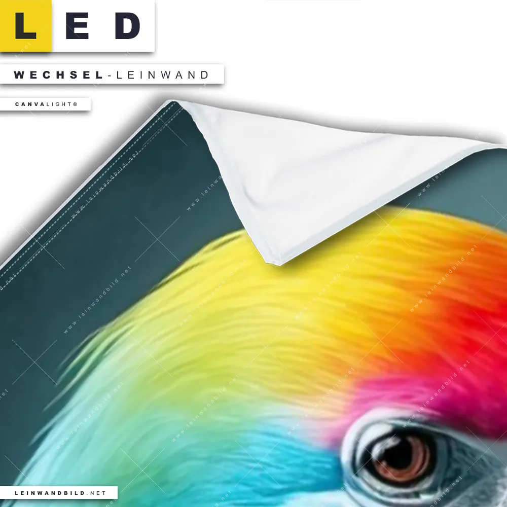 Du bist auf der Suche nach einer Tierwelt Wechsel-Leinwand für Dein LED-Leinwandbild im Schmalen Format? Begriffe wie Vogel, Flamingo, Dschungel, Wasser, Farbe, Regenbogen haben Dich auf der Suche nach Deiner Ersatz-Leinwand für dein LED Wandbild im Panorama-Hochformat mit wechselbarer Leinwand inspiriert? Farben wie Pink, Blau, Orange dürfen auf Deinem neuen Wechselmotiv für Dein XXL Leinwand-LED-Bild nicht fehlen und Leinwände im Pop Art Stil für Leuchtbilder passen perfekt zu Deinem Einrichtungsstil?