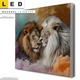 LED Wechsel-Leinwand Canvalight® TEX | Sanfte Löwenmomente in buntem Nebel | Hochformat