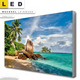 Bitte beachte, dass die Farben, der auf dem Monitor abgebildeten Seychellen - Tropische Insel Darstellung, möglicherweise von den Originalfarben deiner Canvalight® TEX Wechsel-Leinwand abweichen können.