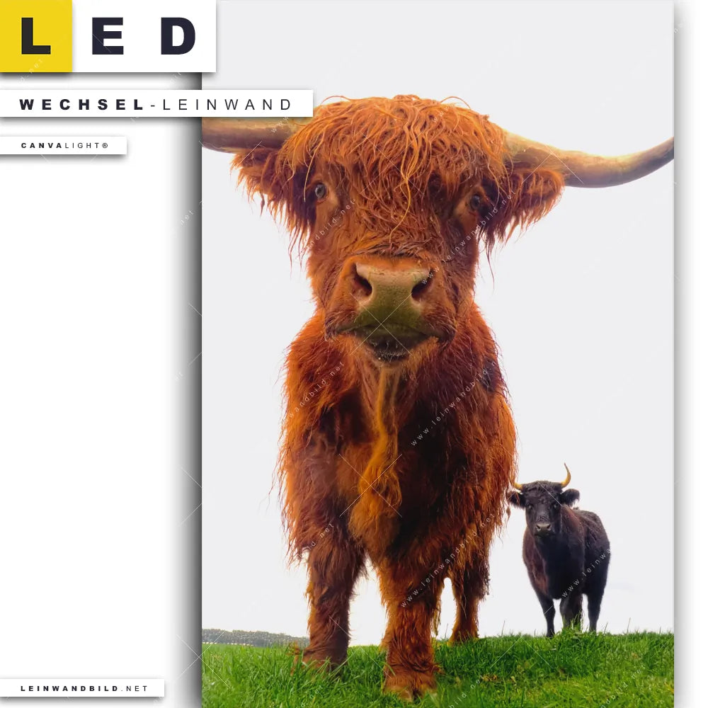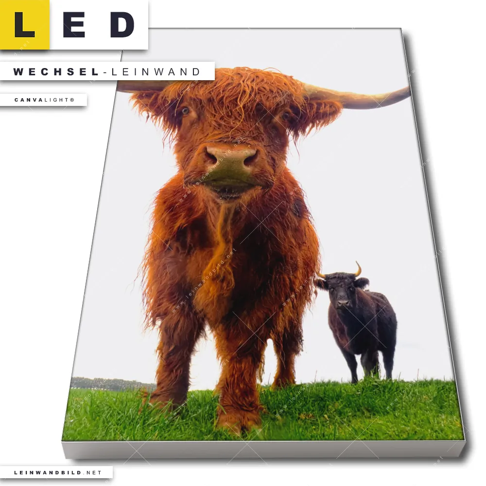 LED Wechsel-Leinwand Canvalight® TEX | Schottisches Hochlandrind | Hochformat
